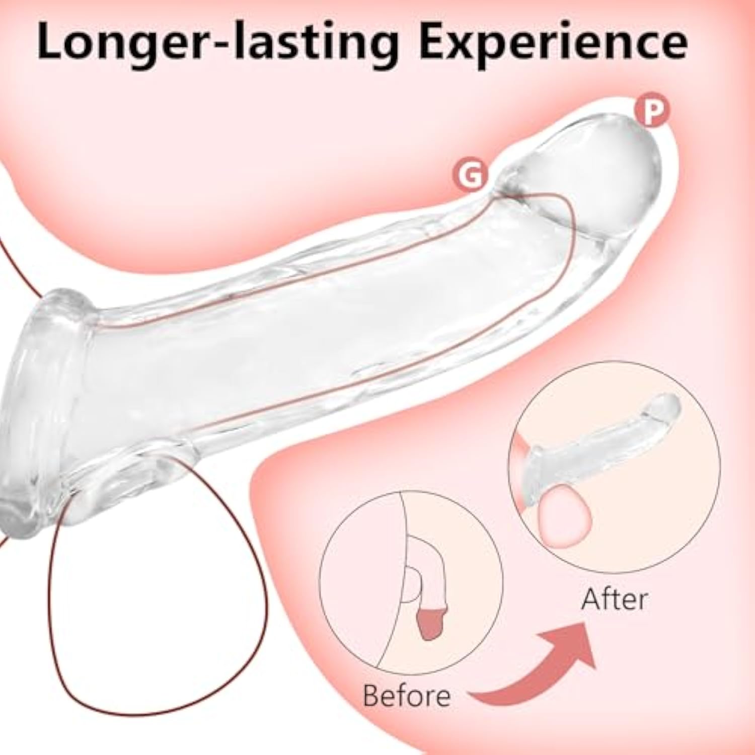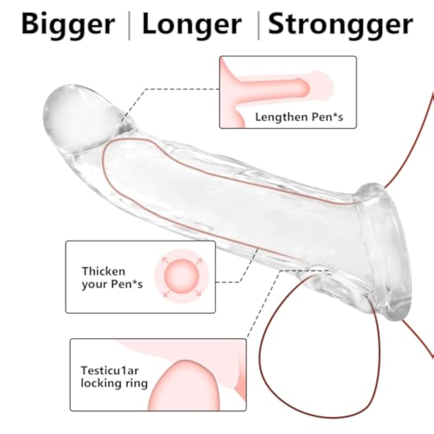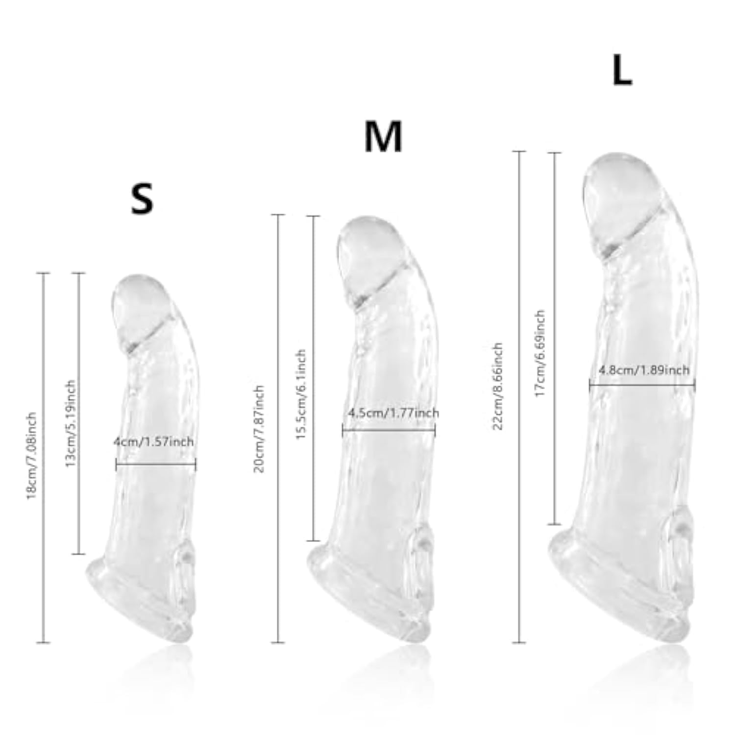 | Clear View Penis Sleeve Set - This Enlarger Extension Set Comes With 3 Sizes, Small Length 7.08Inch, Diameter 1.57Inch, Medium Length 7.87Inch, Diameter 1.77Inch, Large 8.66Inch, Diameter 1.97Inch.It Can Satisfy Your Needs Of Different Periods. | | Soft And Flexible Cock Sleeve - This Penis Sleeve Is Made Of Tpe, Soft And Odourless, Can Be Properly Stretchy And Quickly Rebound. | | Penis Extender With Cock Ring - This Sleeve Sheath With Penis Ring Design Can Stabilize The Position Of Testicles And Slow Down The Blood Back Flow, Longer-Lasting. | | Multi Function Cock Extension: This Extension Toys Is Not Only As Special Design Sex Toys For Men Who Enhance The Penis To Become Bigger, Longer And Thicker, But Also It Can Be Used By Women, Play This Tpe Sleeve With Silicone Dildos Or Clit Vagina Vibrators.It'S Also A Different Kind Of Fun. | | Protect,Discreet Packing - It Is Our Duty To Protect The Privacy And Security Of Each Buyer. This Jelly Penis Sleeve Realistic Men'S Sleeve Comes In Discreet Packaging, No Any Male Sex Toys / Sexual Life Related Displays. | |