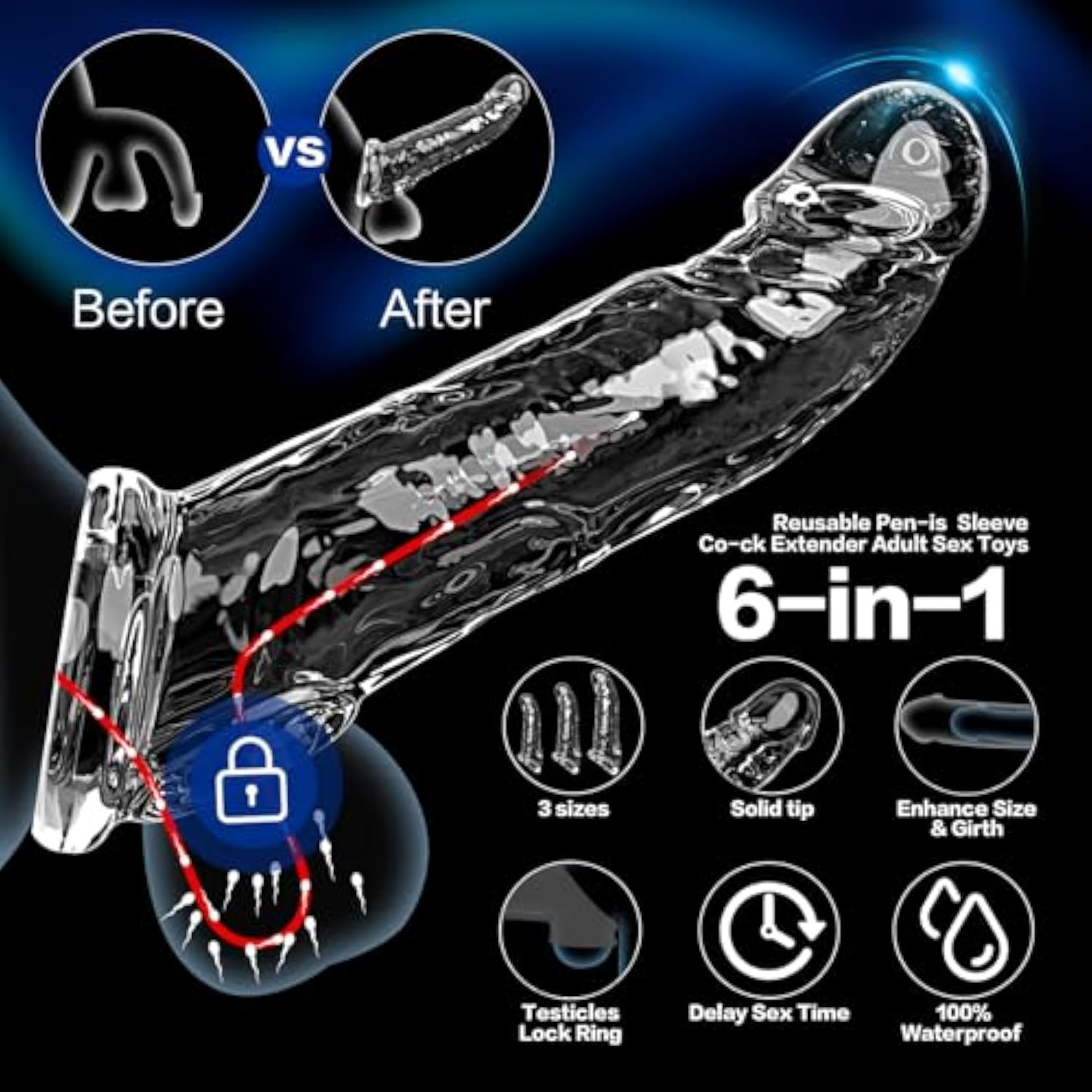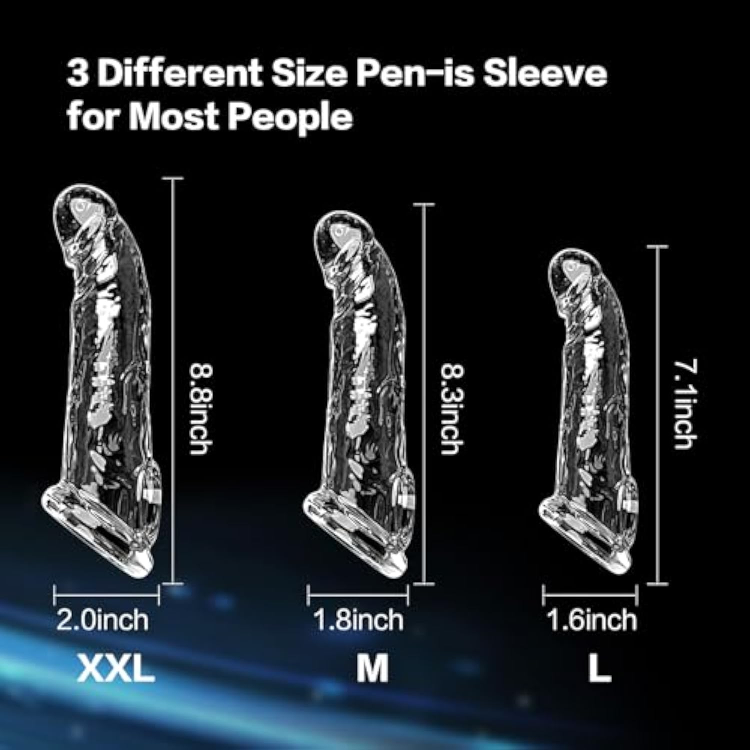 3 Size Reusable Penis Sleeve Cock Ring, Soft Clear Cock Sleeve Penis Extender Adult Sex Toys For Men Women, Durable Penis Enlarger Male Sex Toys For Couples Pleasure