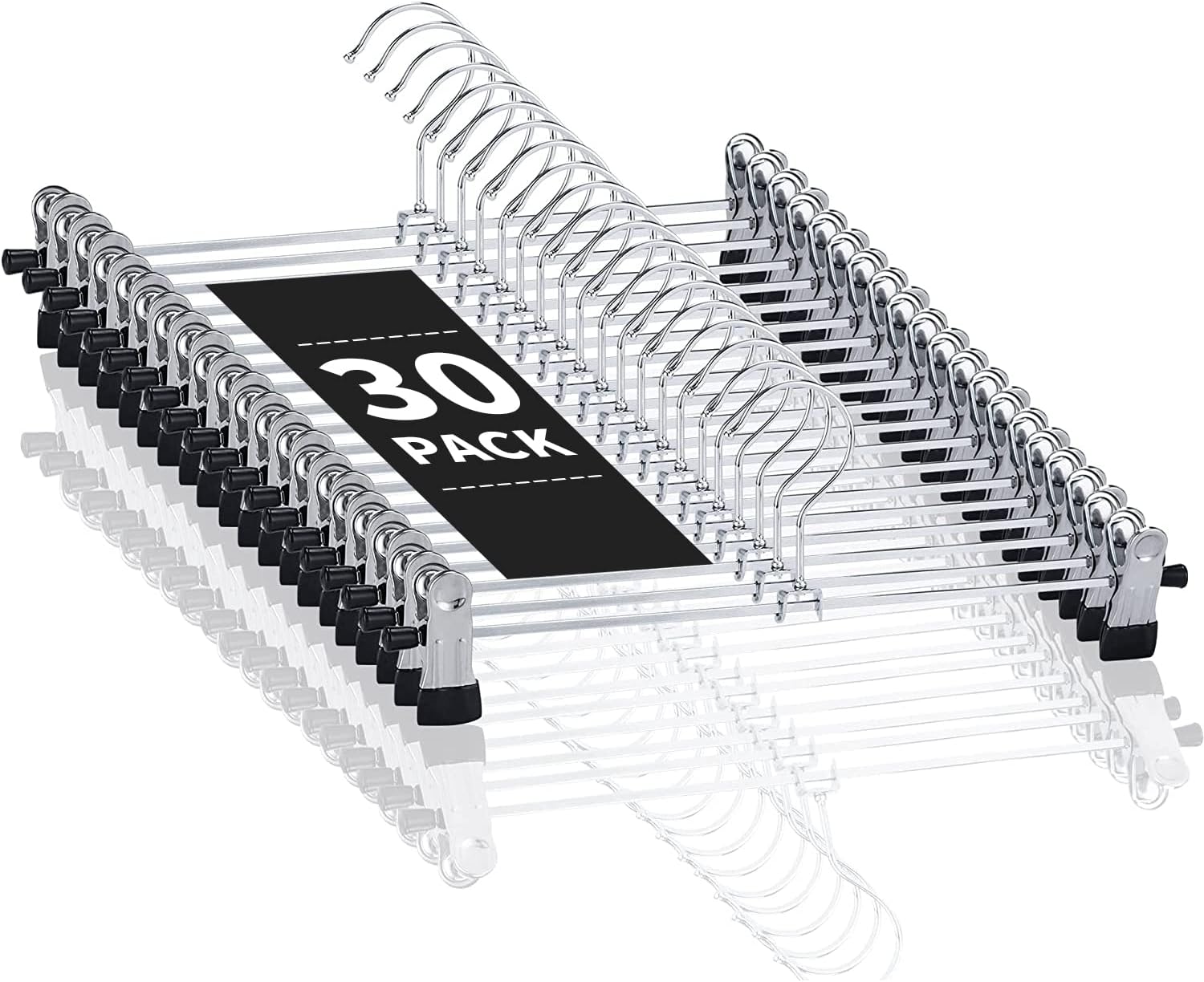 30 Pack Pants Hangers with Clips Skirt Hangers for Women Shorts hangers Heavy Duty Metal Clothes Hanger for Closet Space Saving Non Slip Trousers Hanger Jeans Hanger for Men,Black,12 Inch