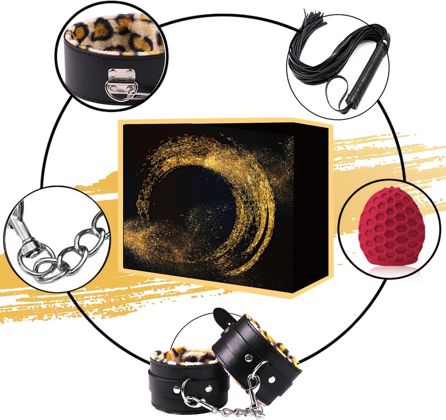 Comprehensive Adult Bondage Kit: This complete set includes essential restraint accessories such as handcuffs, gags, silicone and metal butt plugs, anal beads, vibrators, and more. Additional interactive tools like whips, feathers, blindfolds, and gags enhance sensory play, allowing couples to explore new levels of intimacy and excitement.