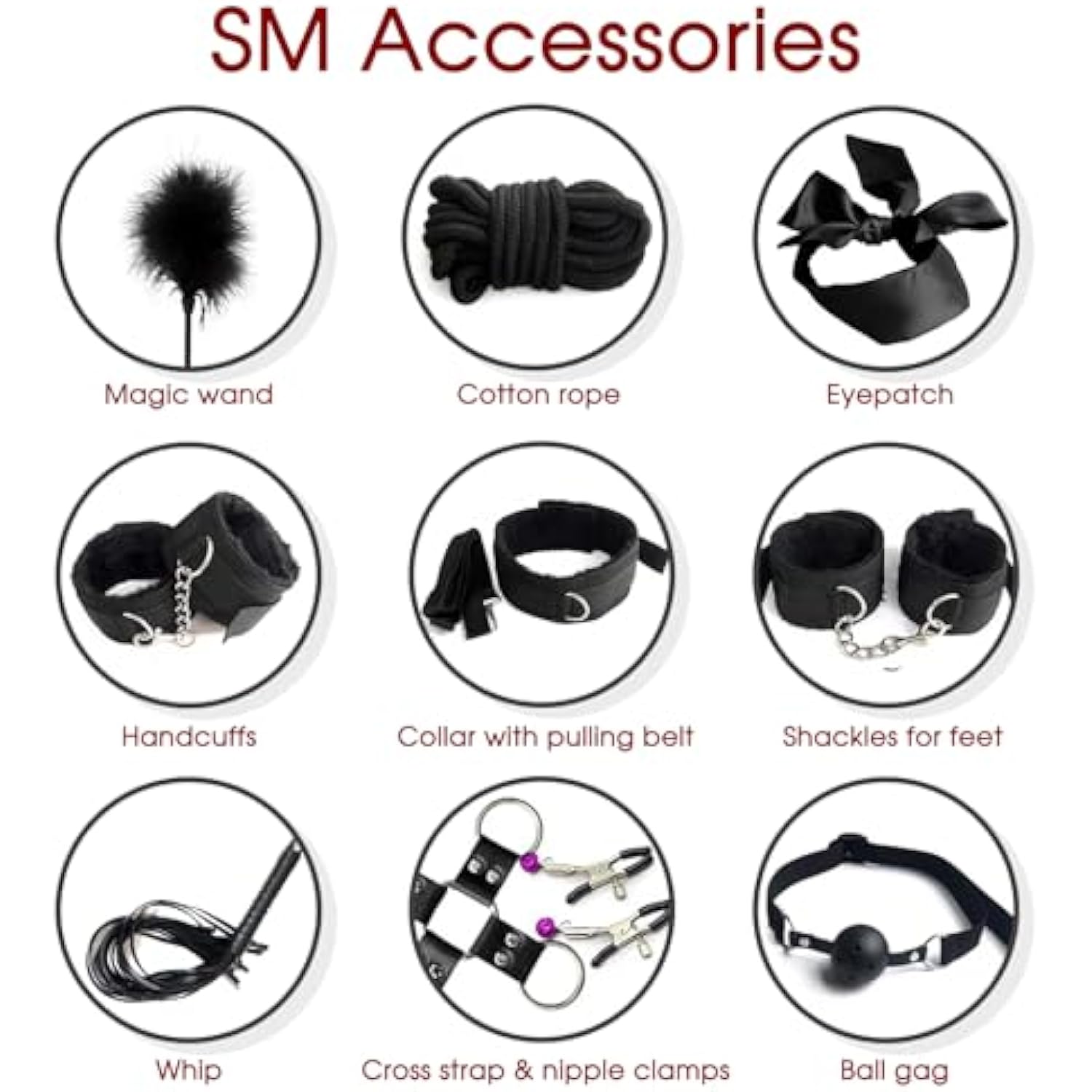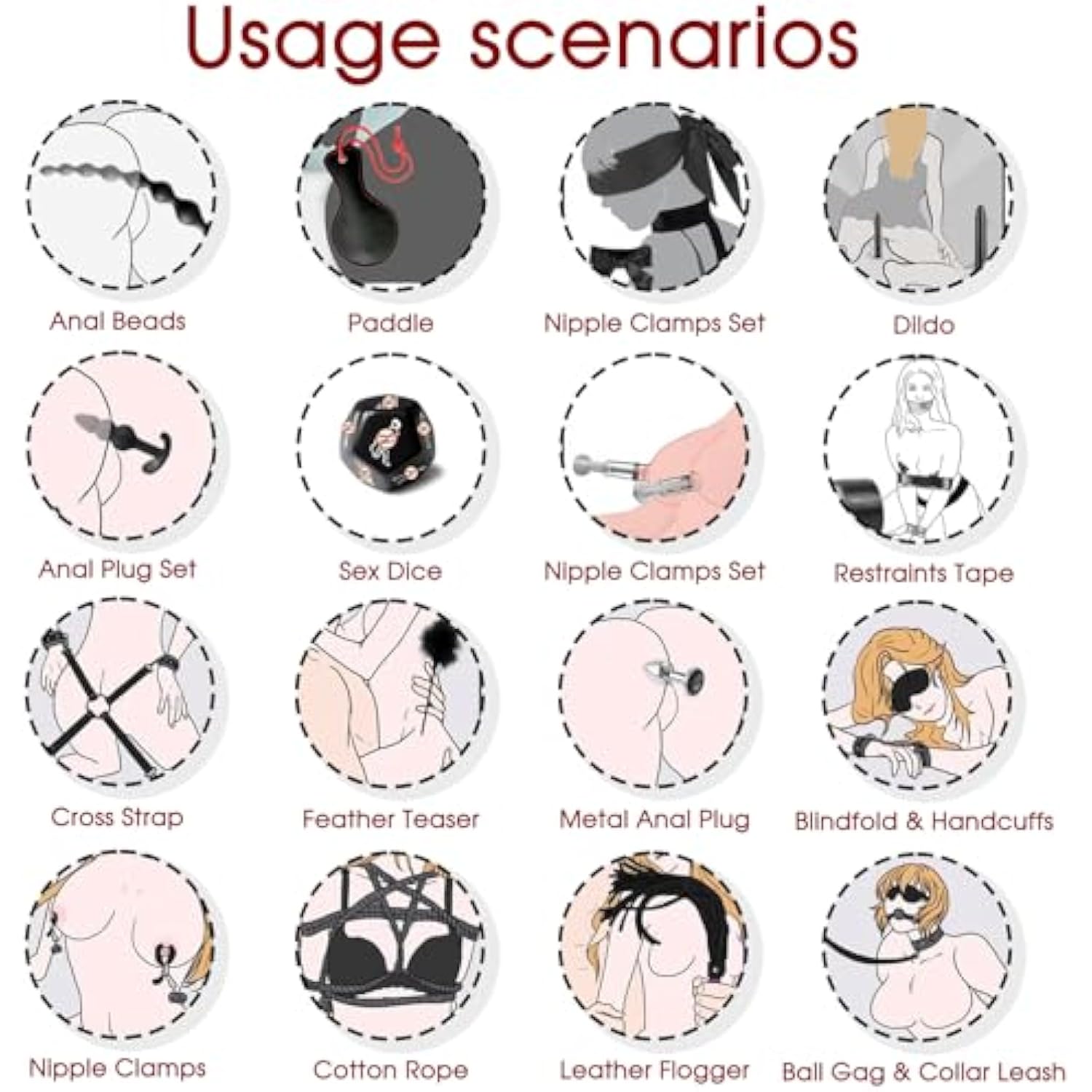 - 35 Pcs Bdsm Kit For Couples: This Bdsm Toys Set Is A Great Sex Kit For Couples, The Whole Sex Bondage Set Consists Of 35Parts, Including Handcuffs, Ankle Cuffs, Gag Ball, Collar, Blindfold, Leather Whip, Anal Plug, Anal Beads, Traction Rope, Sex Dice, F