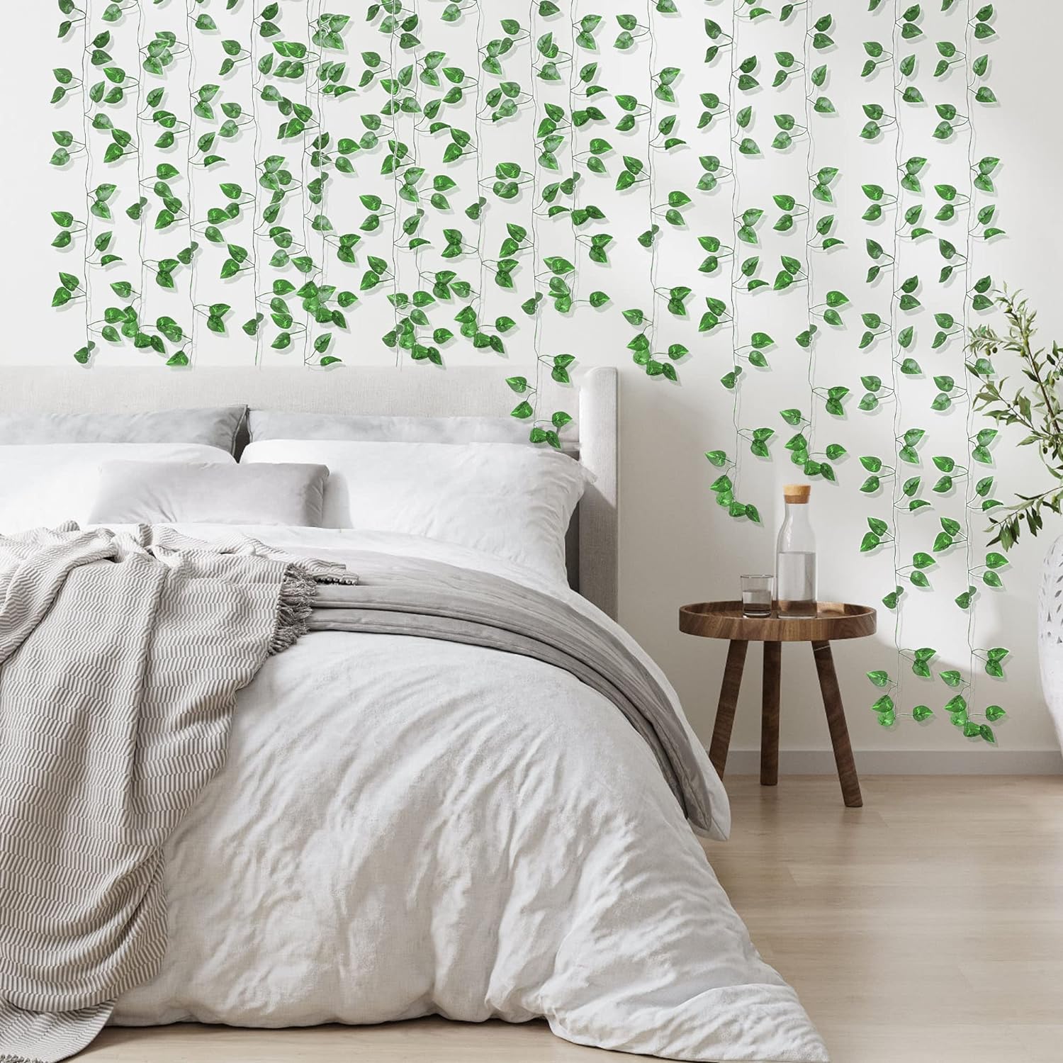 360 Feet 48 Pack Fake Greenery Hanging Garland, Ivy Leaf Plants, Vine Leaves, Fake Flowers Foliage for Bedroom Garden Wall Decor