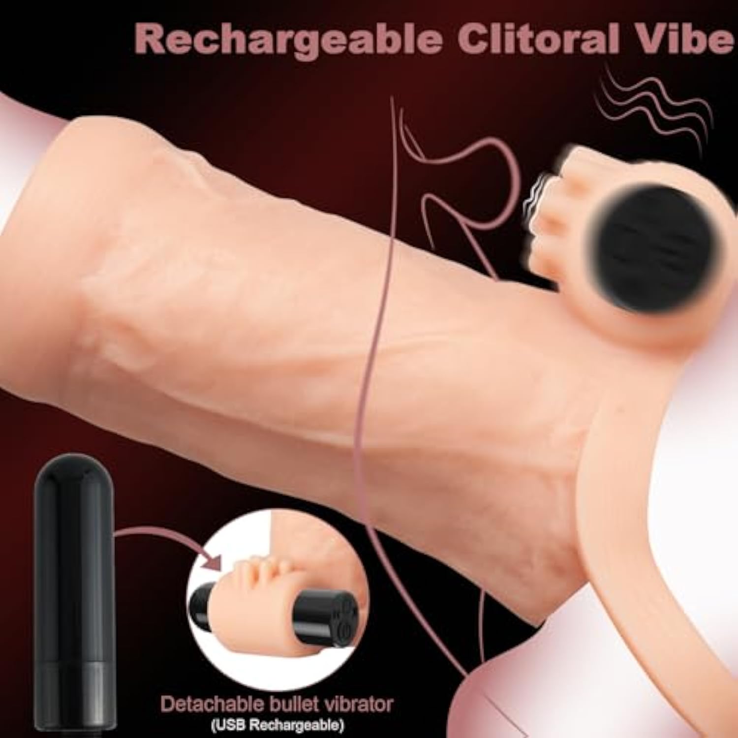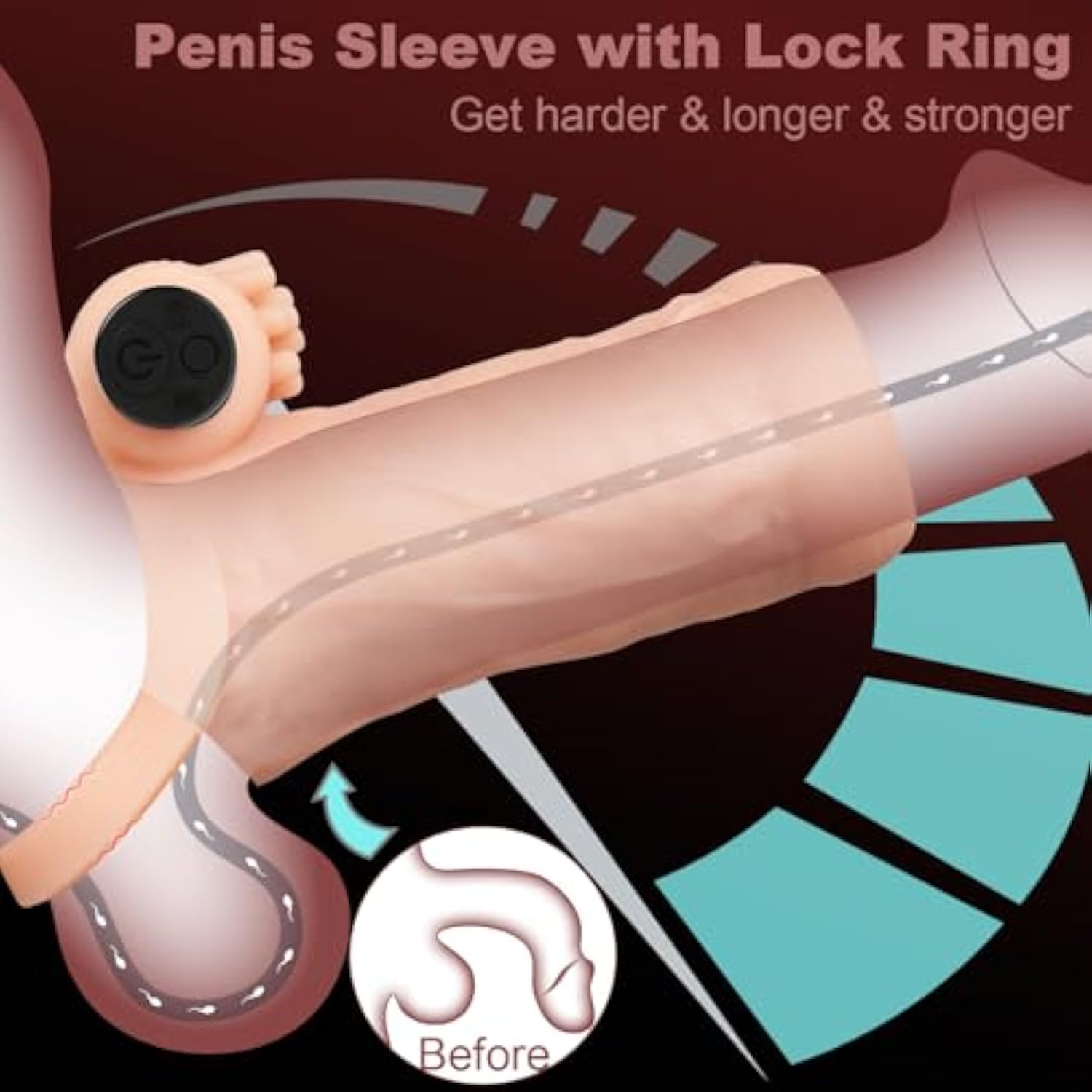 3In1 Vibrating Penis Sleeve Enlarger With Rechargeable Clitoral Vibrator,10 Vibration Modes Couple Sex Toys,Girth Enhancer Extender For Men With Elastic Cock Ring To Enhance Hardness Delay Ejaculation