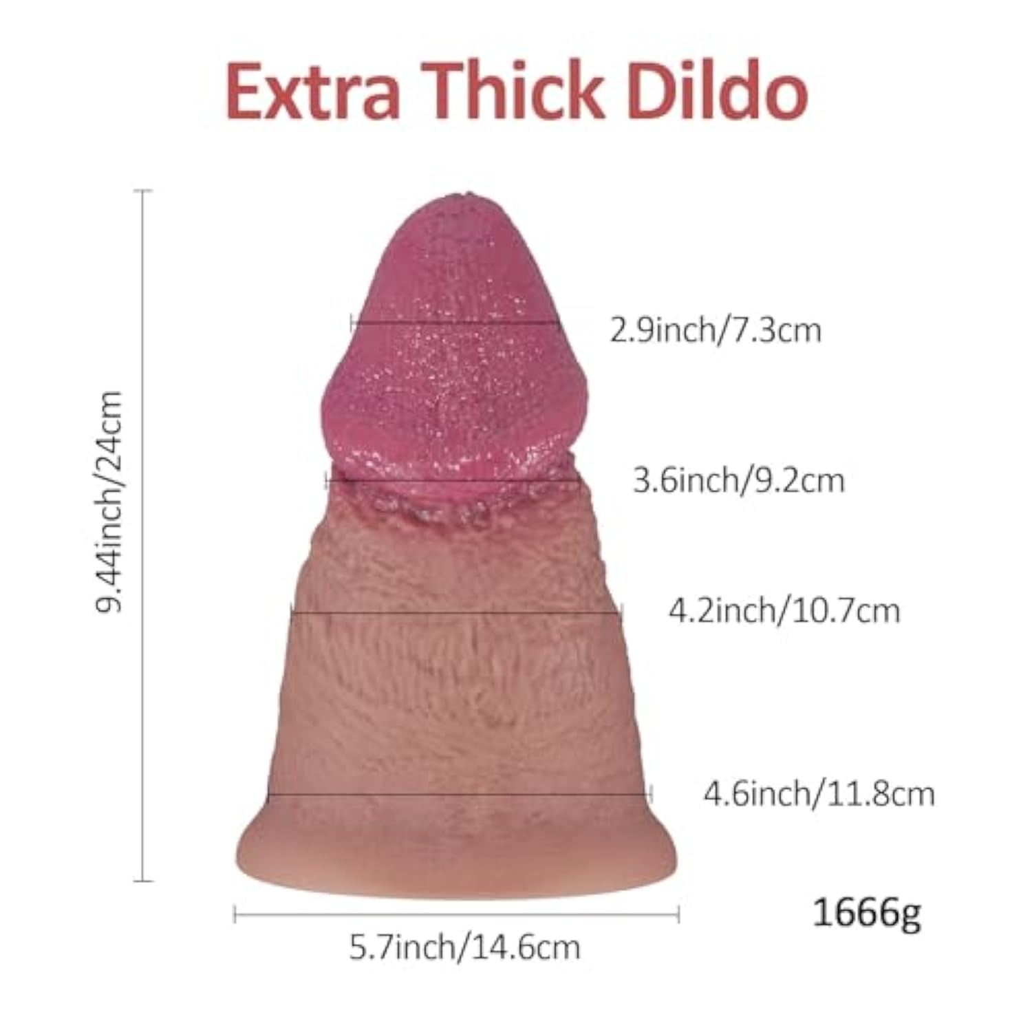 | Tapered Cone Design For Progressive Pleasure: This Extra-Thick Massive Cone-Shaped Dildo Features A Tip Measuring 2.9 Inch In Diameter, Perfect For Easy Entry. As You Go Deeper, It Gradually Widens To An Impressive 4.6 Inch. The Unique Tapered Design Ensures A Progressive Stretch, The Thickness Ensures Maximum Stimulation And An Intense Stretch. | | Realistic Fat And Thick Dildo: This Product Reaches An Impressive Maximum Diameter Of 4.6 Inch At Its Widest Point. It Is Designed For Advanced Users Who Are Familiar With Larger Toys. The Realistic Glans And 3D Vein Texture Raised On The Surface Are Soft And Flexible, Realistic To The Touch And Visually Outstanding, Allowing You To Experience The Most Realistic Process Possible. | | Premium Silicone Material: Made From High-Quality, Body-Safe Silicone, This Huge Dildo Feels Incredibly Lifelike While Remaining Durable, Flexible, And Easy To Clean—Perfect For Long-Lasting Enjoyment. | | Strong Suction Cup: This Big Adult Toys Equipped With A Strong Suction Cup Base, The Wide Dildo Can Be Attached To Any Smooth Places, Such As A Bathroom Wall, Tub Or Door, Providing Stability To Ride And Enjoy Hands-Free Pleasure. | | Discreet Package: Your Privacy Is Of Utmost Importance To Us. All Gaint Dildo Huge Butt Plug Are Privately Packaged In A Sealed Box Without Any Sensitive Labelling. (Tip: We Recommend Using A Generous Amount Of Water-Based Lubricant Before Use. Clean It Before And After Each Use, Be Sure To Wash And Dry It With Water And Soap, And Store It In A Place Away From Direct Sunlight.) | |