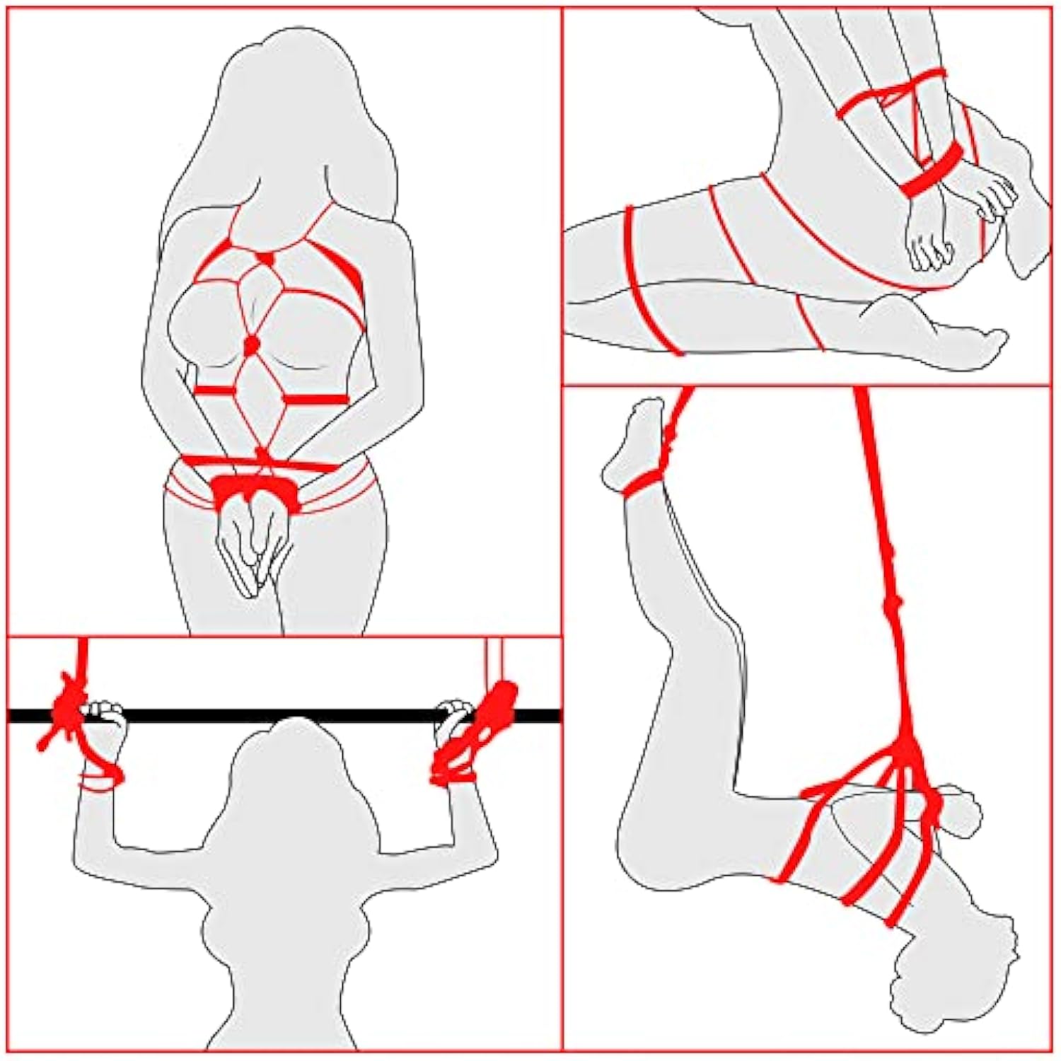 4 Pack Soft Cotton Rope 32 Feet 10M Bdsm Shibari Bondage Rope Restraint Kits Adult Sex Toys For Women Couples (Black And Red)
