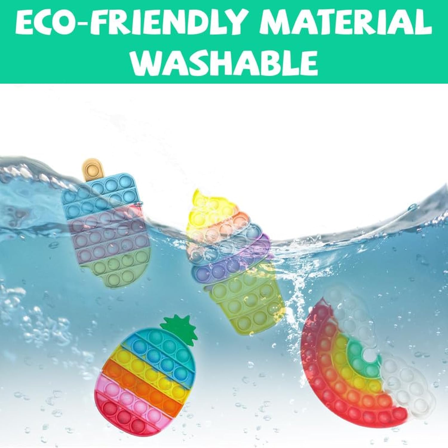| Fidget Toys: These Gift Fidget Toys Are Made Of High-Quality Silicone Material, Which Is Non-Toxic, And Safe To Use. Fine Craftsmanship And Smooth Edges Will Not Hurt The Skin | | Toy Bulk: This Is A Gift Set Containing Various Fidget Toys To Relieve Stress: Toy Long Ice Cream X1, Cicle X1, Pineapple X1, Rainbow Cloud X1 | | Relieve Stress: When You Press The Bubble, The Gift Fidget Toys Will Make A Slight Ping Sound, And The Crisp Sound Can Help You To Relieve Your Inner Irritability. By Squeezing Our Silicone Fidget Toys, You Can Achieve Mental Comfort And Emotional Release | | Play Anywhere Anytime: Fidget Toys Gift Can Be Played In A Car, Plane, Restaurant, Camping (It’S Liquid-Proof), School, Office, It Also Can Be Used To Play Games, As A Coaster, As A Frisbee, As A Decompression Toy, And More | | Interactive: Fidget Toys Gift Help To Enjoy Family Time While Everybody Interacting Together. Great Gift For Your Friends, And Family Member | |