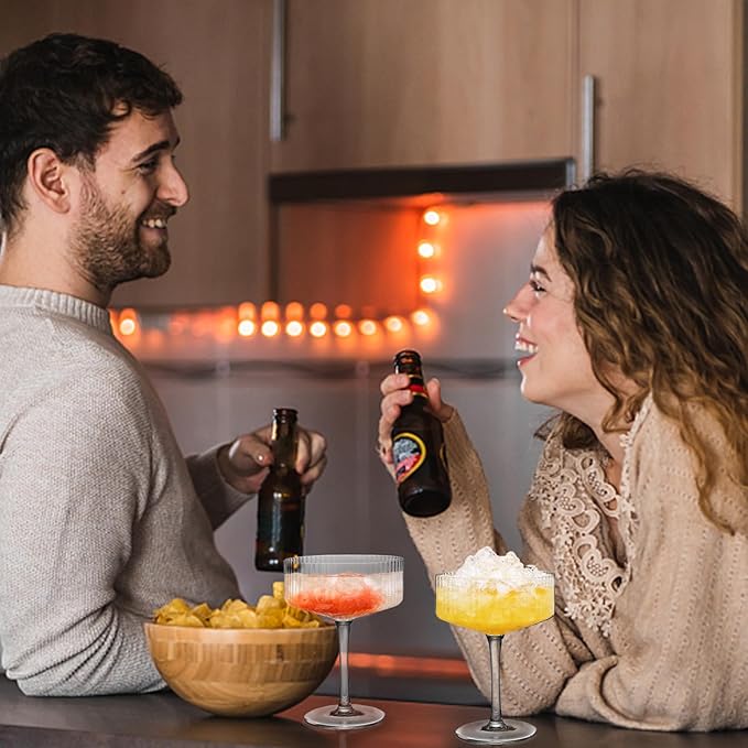 - ćMultiple UsećThese coupe glasses is perfect for whiskey, bourbon, margarita, vodka, gin, vodka and soda, and other alcoholic drinks, and also can use them for juice, ice cream, yogurt or any cold dessert.