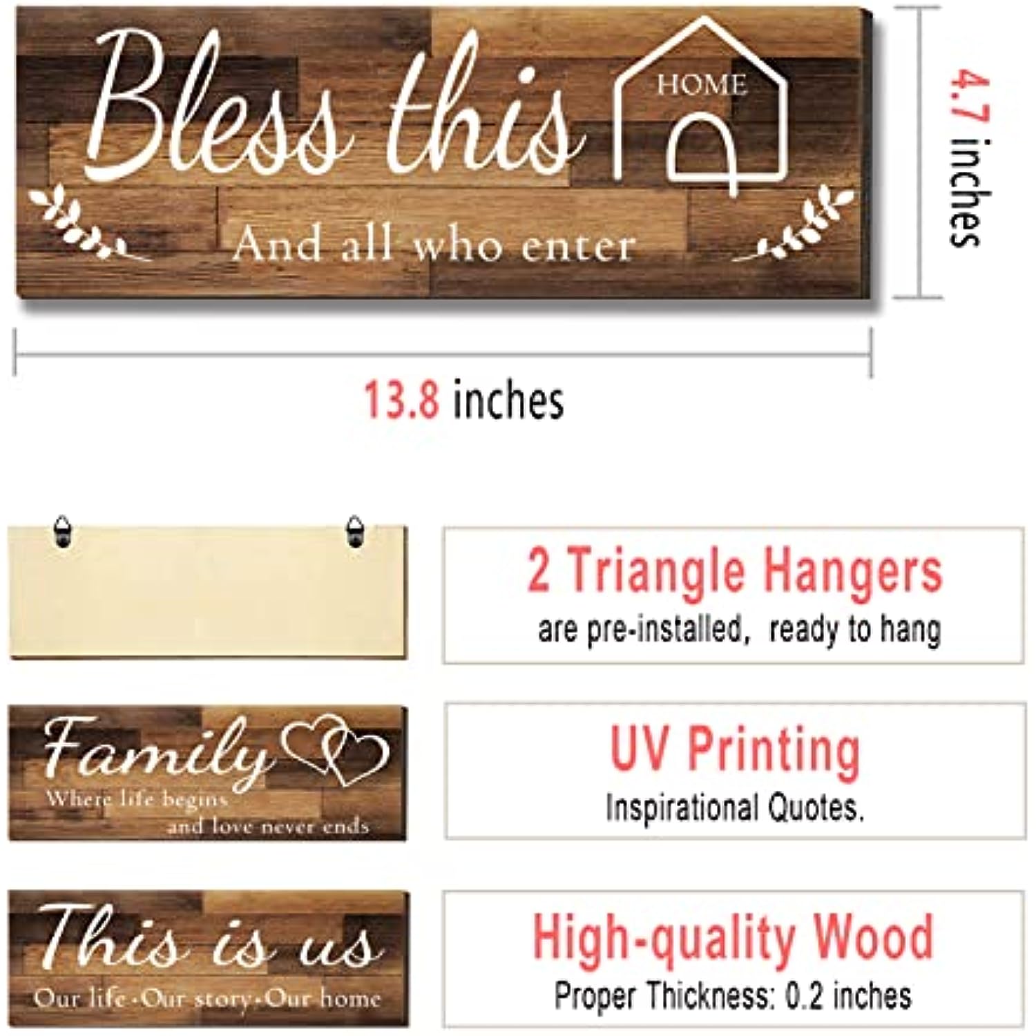 - Beautiful decorations: Each package contains 4 home decorative signs. Size is about 4.7x13.8 inches (35x12 cm). You can hang them anywhere to make your home beautiful.