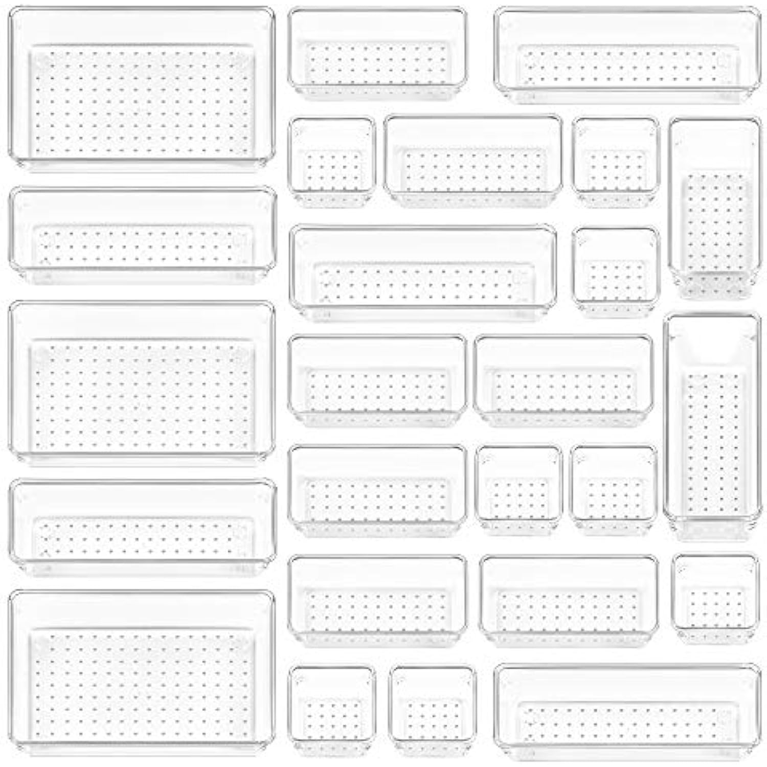 4-Size Versatile Bathroom and Vanity Drawer Organizer Trays