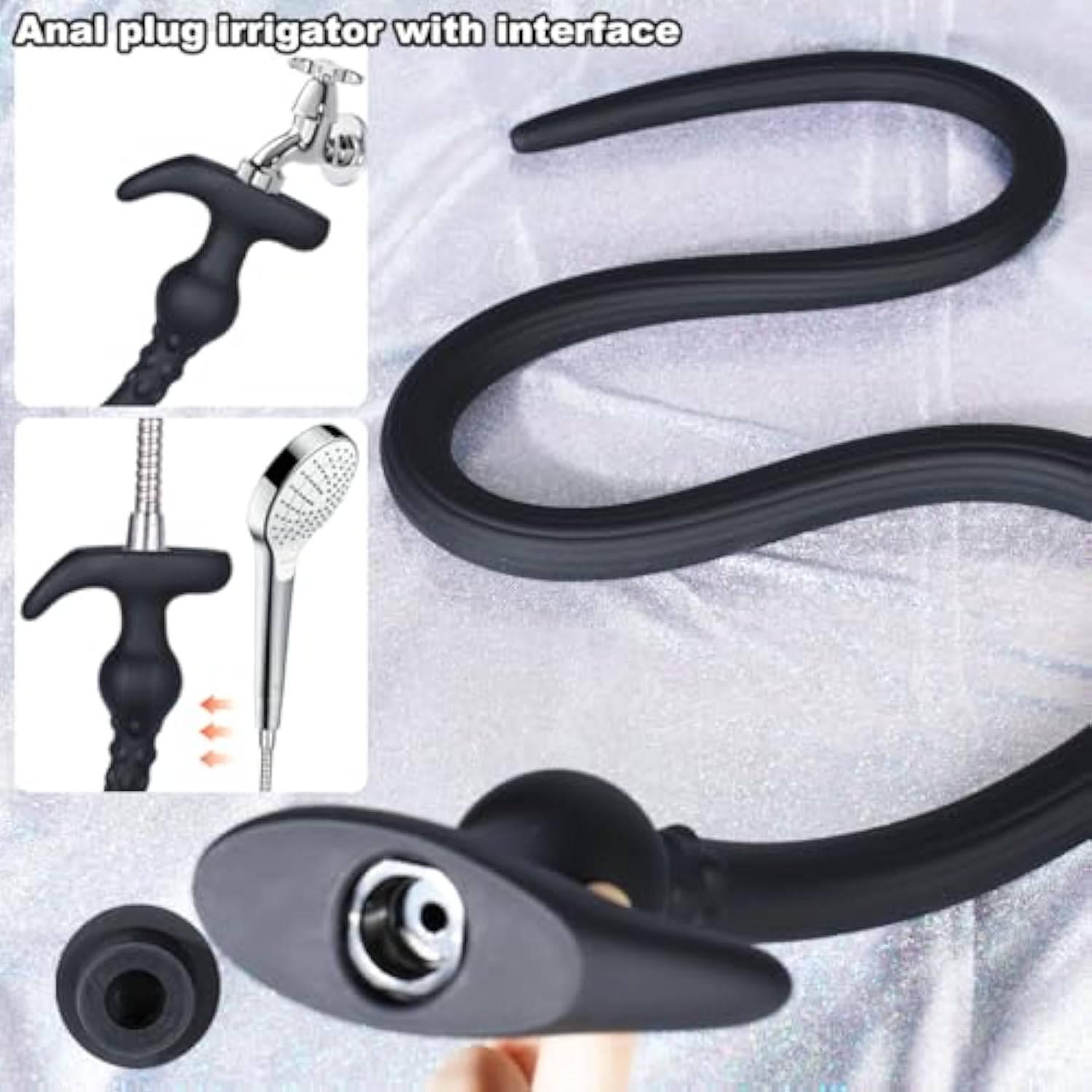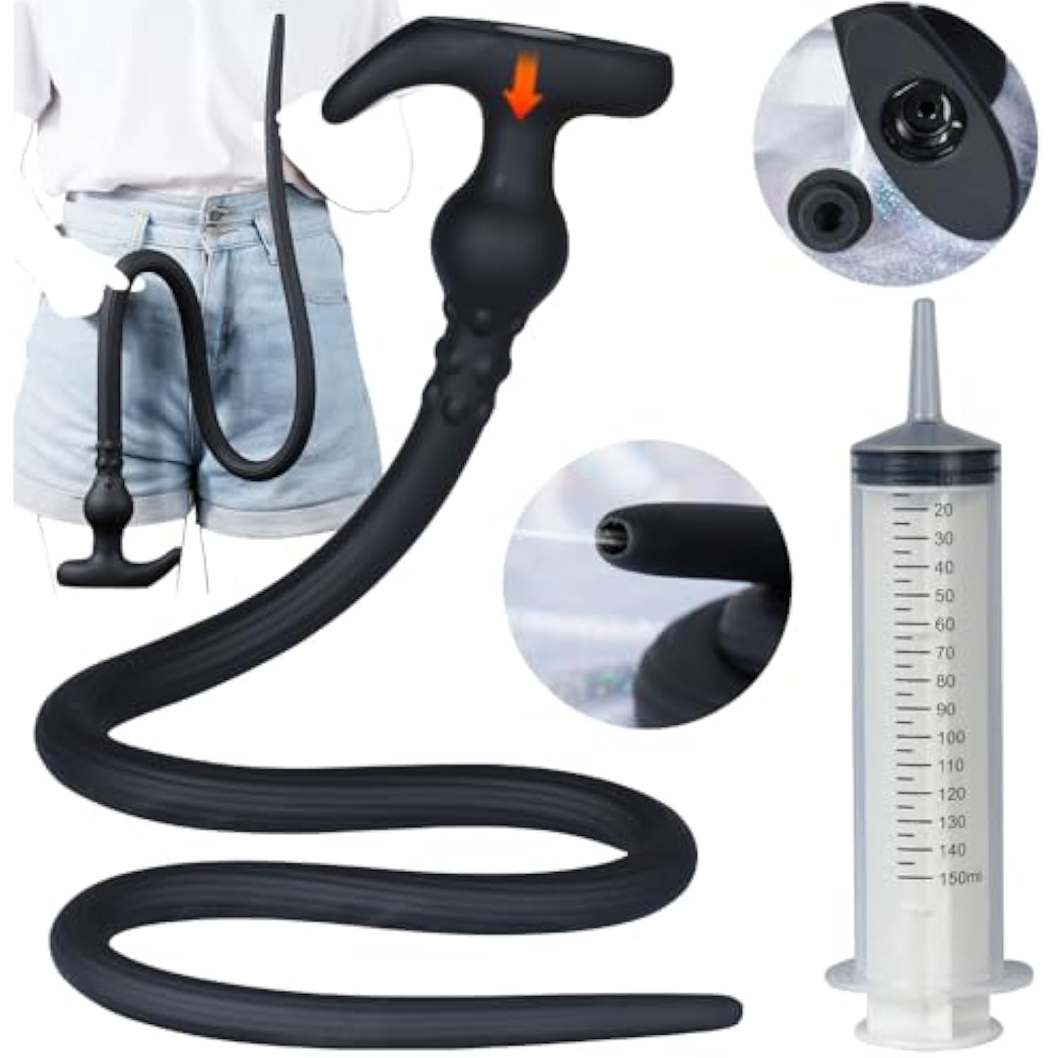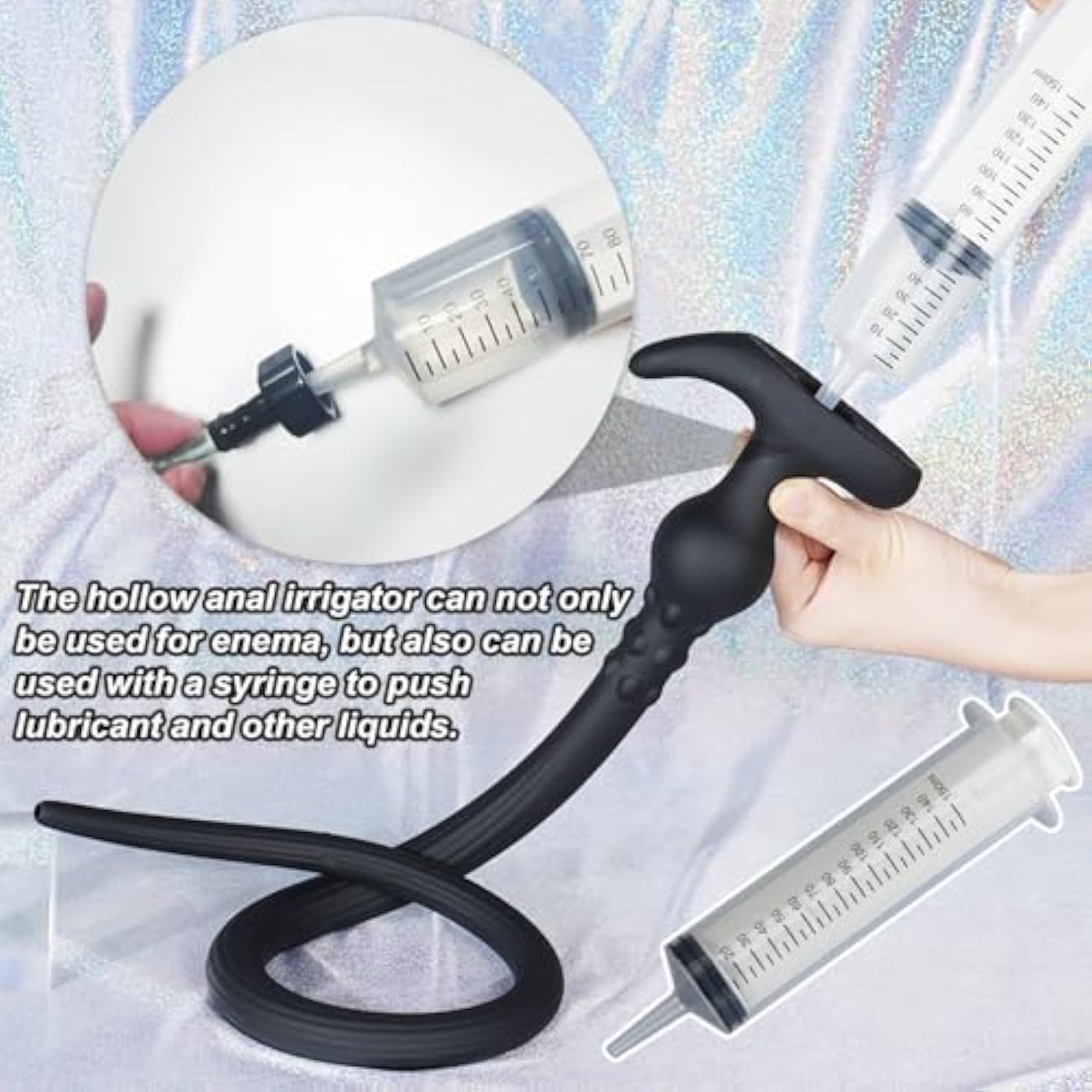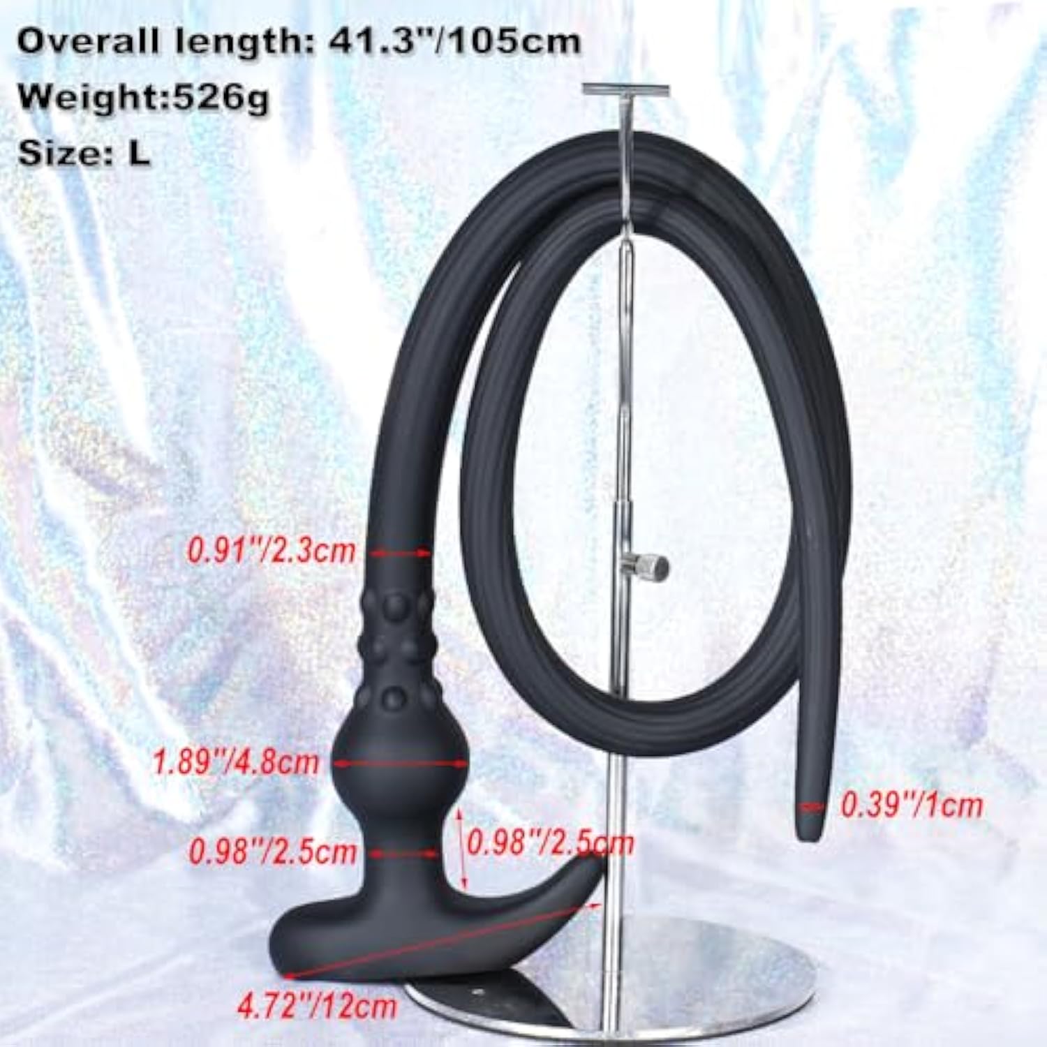 41" Bdsm Extra Long Silicone Anal Plug Douche Set With 150Ml Syringe, Shower Douche Nozzle For Travelling Extended Enema, Hollow Butt Plug Dildo Sm Sex Toys For Adults Male Female Couples (L)