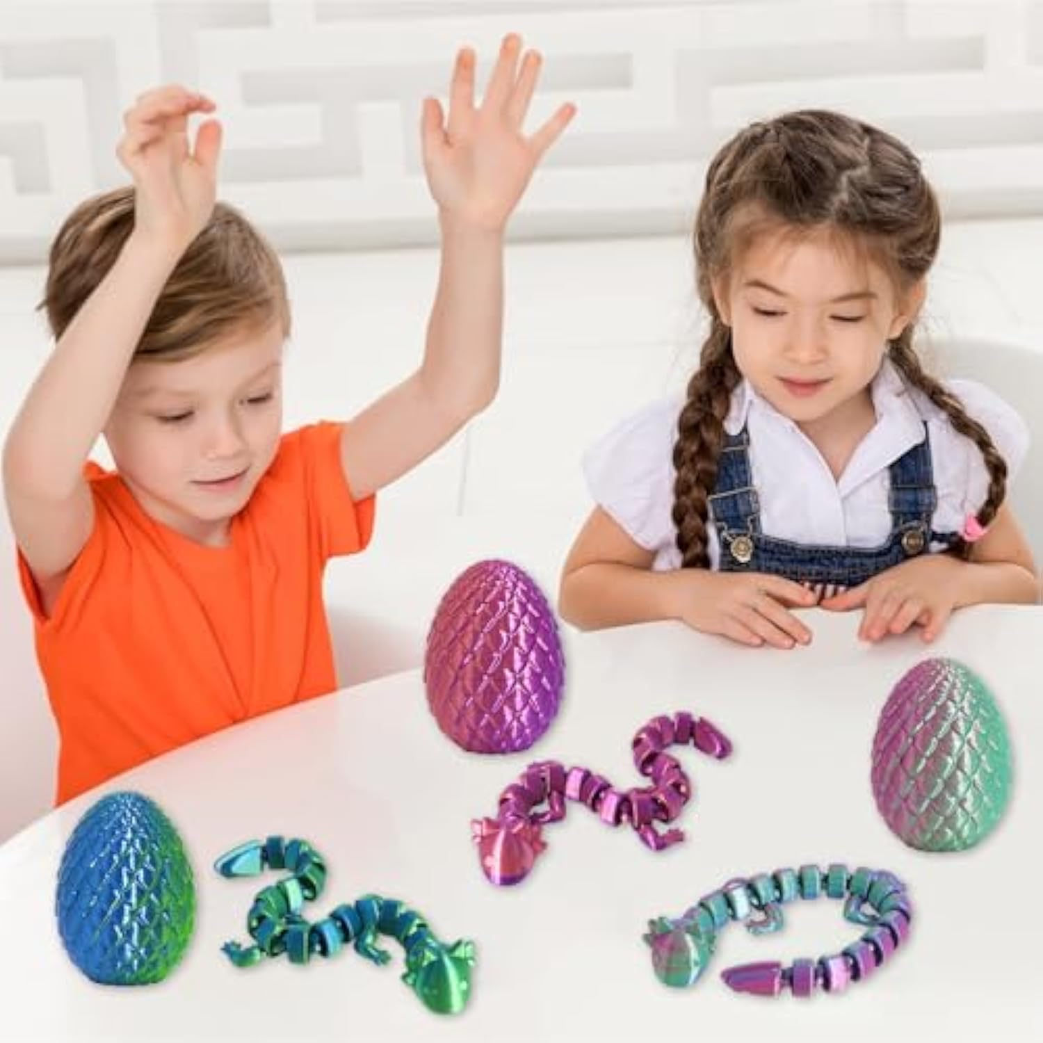 | ?Safe And Eco-Friendly Material?Our 3D Printed Salamander Egg Crafted From Non-Toxic Pla Material, This Salamander Egg Set Prioritizes Your Child’S Safety. You Can Let Your Kids Play With Confidence, Knowing The Toy Is Both Safe For Them And Gentle On The Planet. | | ?Hidden Surprises Inside Egg?Each 3D Printed Egg Holds A Uniquely Designed Cute Salamander, Waiting To Be Discovered. This Exciting Reveal Not Only Brings Joy But Also Offers Endless Story - Creating Possibilities For Fantasy Enthusiasts And Tabletop Gamers. It Sparks Children’S Sense Of Adventure, Encouraging Them To Imagine Epic Quests And Magical Worlds Where These Salamander Belong. | | ?Complete Dragon Egg Collection?Each Box Contains Four Salamander Eggs In Different Colors, And Inside Every Egg Is A Lifelike Dragon With Movable Joints. The Vivid Details Of The Salamander, From Their Scales To Their Expressions, Make Them Look Like They’Ve Stepped Out Of A Fairy Tale. The Movable Joints Allow For Various Poses, Adding More Fun To Playtime. | | ?Ideal Gift For Multiple Festivals?This Dragon Egg Set Is A Wonderful Gift Choice For Kids On Many Festivals. Whether It’S Easter, Halloween, Or Christmas, It Will Bring A Big Smile To Their Faces. It’S Not Just A Toy But A Ticket To A World Of Imagination, Making It A Memorable Present That Stands Out From Ordinary Gifts. | | ?Usage Tip?Please Note That The Crystal On Top Of The 3D - Printed Salamander Model May Have Some Sharp Edges. Be Careful With These Sharp Parts To Avoid Cutting Your Precious Hands, Especially When Kids Are Playing Or Adults Are Helping Them Unbox The Eggs. | |
