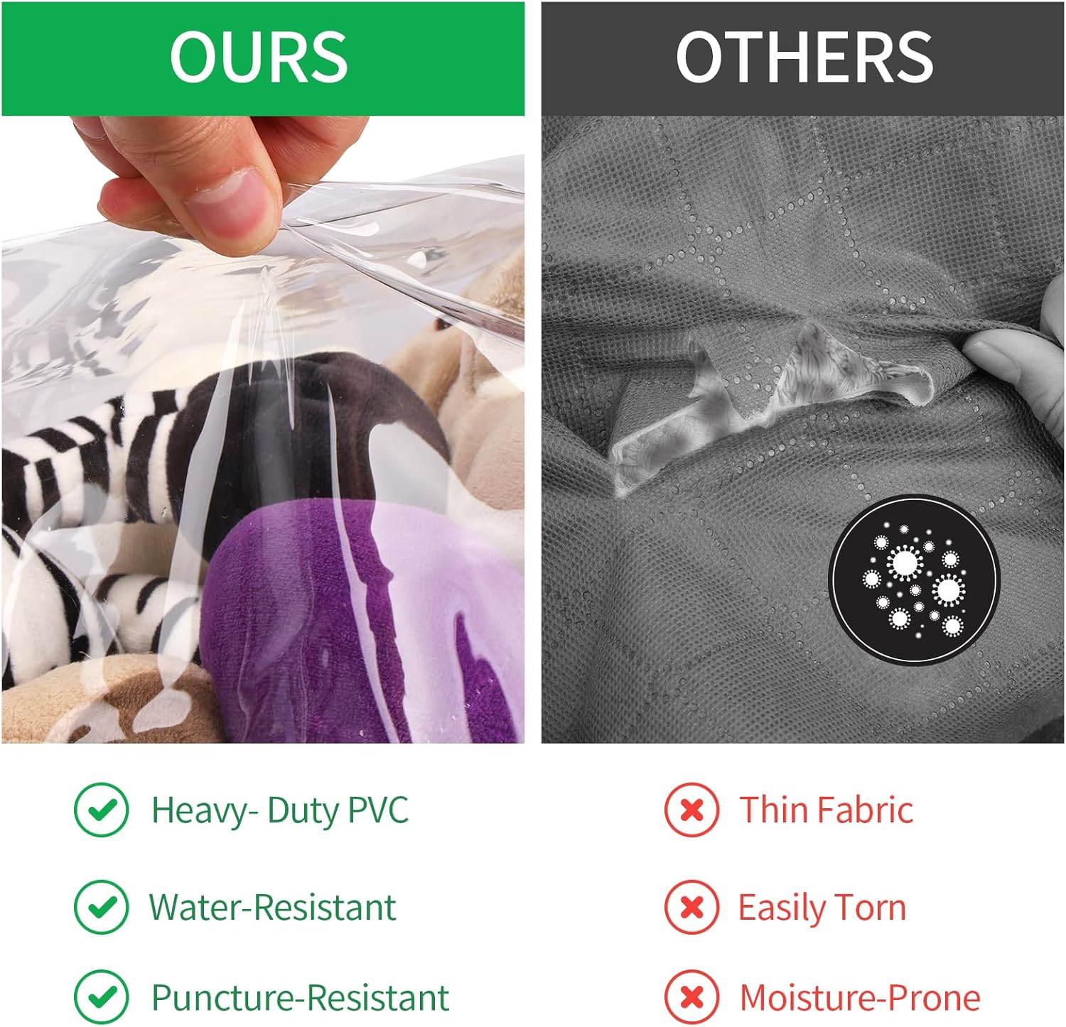 - [Transparency Design] Our storage bags are made of heavy-duty PVC fabric, waterproof and puncture-resistant, sturdy, with the highest level of transparency, full transparency design, you can quickly view the contents of the storage box.