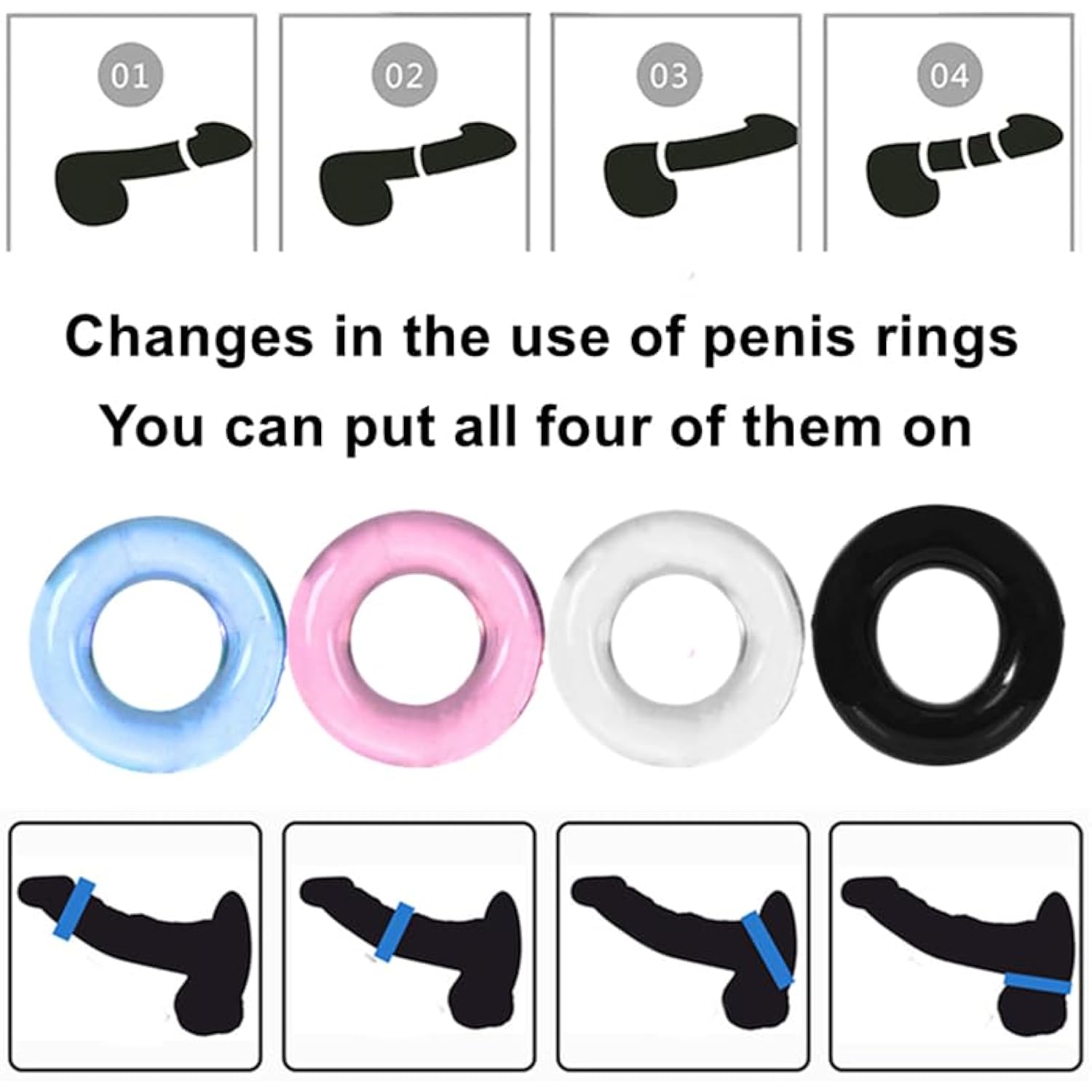 4Pcs Silicone Cock/Penis Rings Set, Cock Rings Penis Sleeve Erection Sexual Stimulation Wellness Enhancing Long Lasting Stronger, Adult Sex Toys For Men Or Couple Pleasure