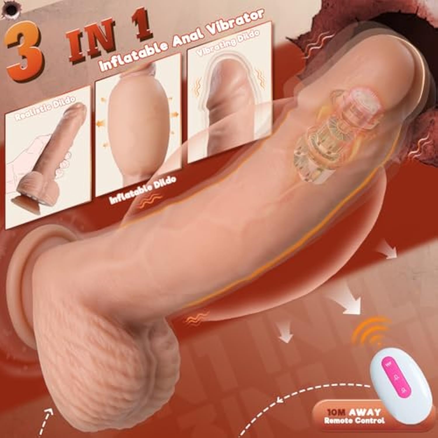 - Realistic Vibrating Inflatable Dildo Experience: Embark On A Journey Of Boundless Pleasure With Our 3 In 1 Huge Inflatable Anal Dildo Vibrator, Designed For Couples Seeking Extra Excitement. It Features Auto-Inflation And Deflation, 10 Vibration Modes,