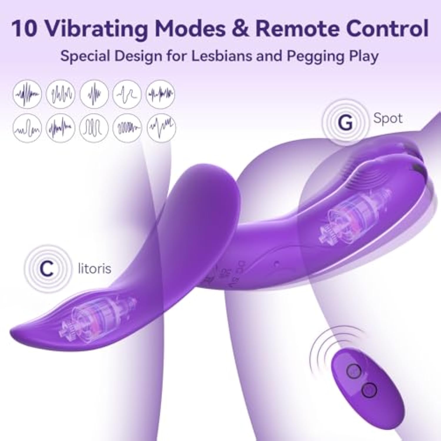 5 Inch Vibrating Strap On Dildo Harness Set For Women And Men,Lesbian Sex Toys With Adjustable Strapon Harness,Rechargeable Vibrator With 10 Modes & Remote Control,Purple