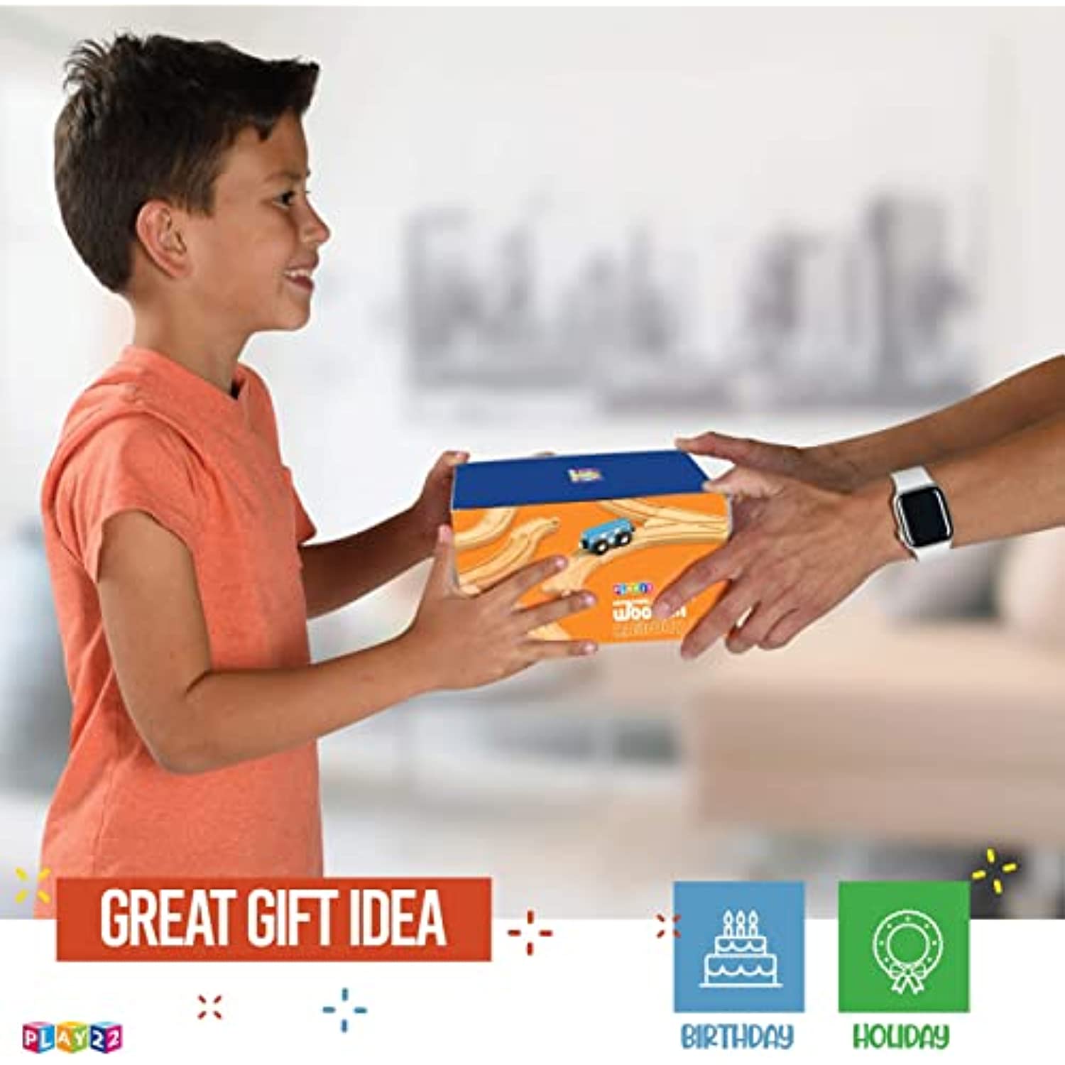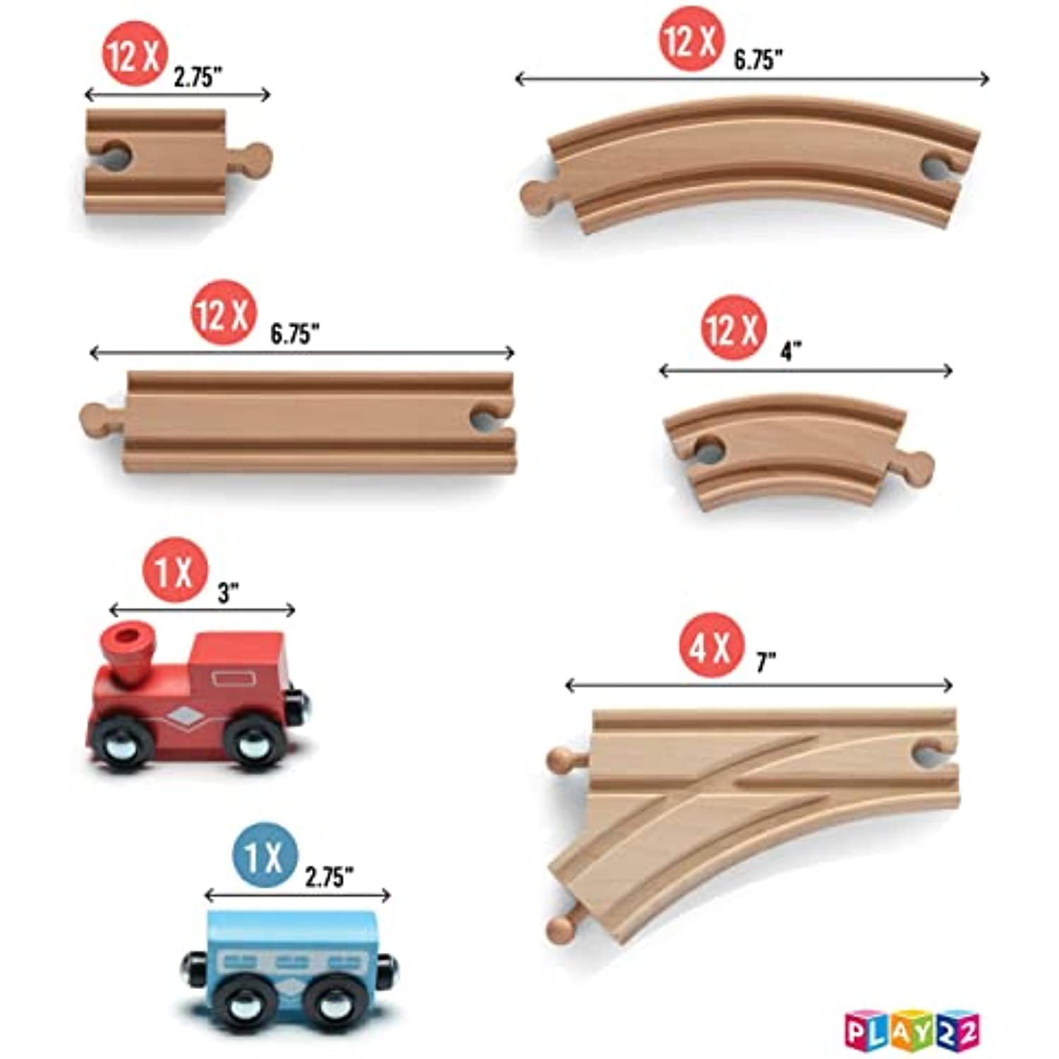 52 PCS Wooden Train Set + 2 Bonus Toy Trains - Train Sets for Kids