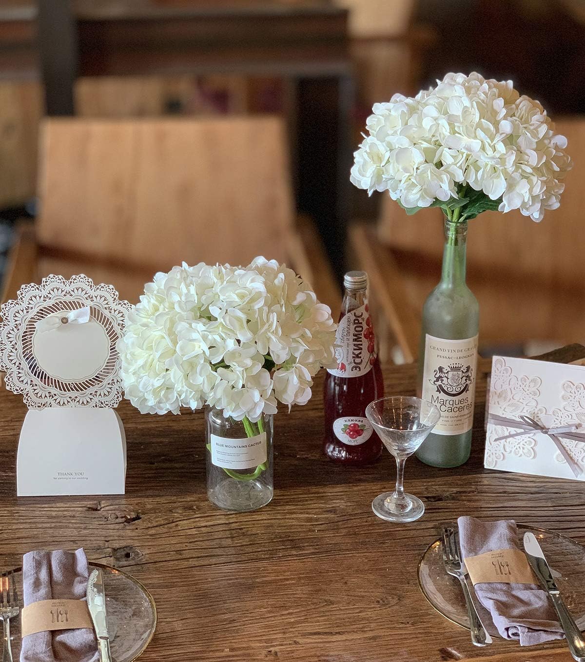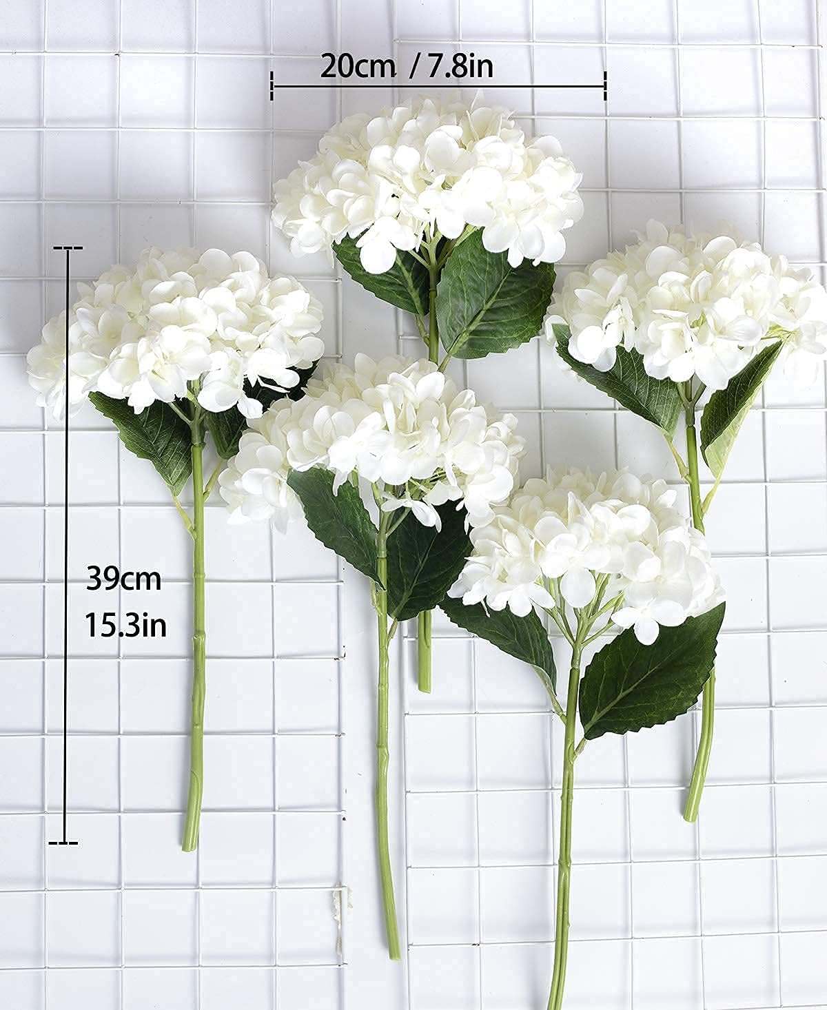 5PCS 15.4In Artificial Hydrangea Silk Flowers Bouquet Faux Hydrangea Stems for Wedding Centerpieces Home Decor (White, 5)