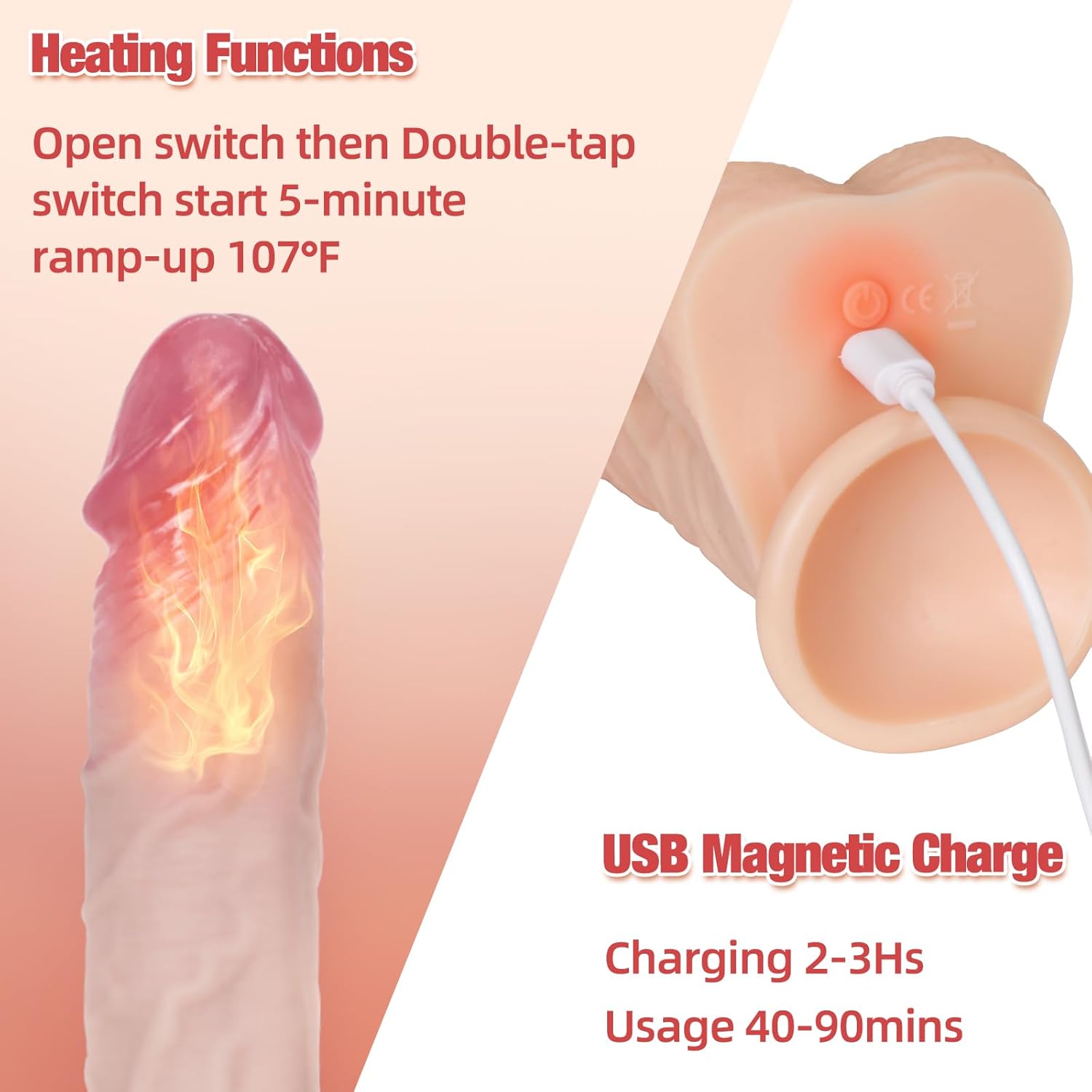 6-in-1 Thrusting Dildo Vibrator | Realistic Silicone with Rotation & Remote