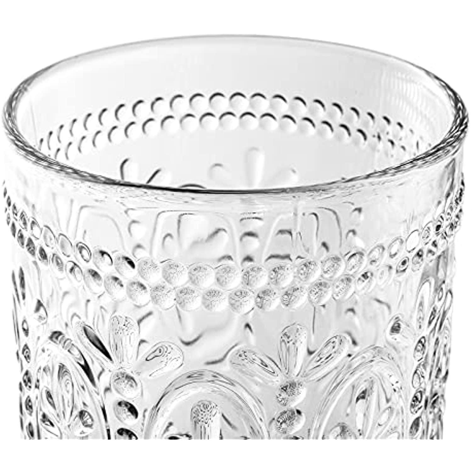 • Set of 6 drinking glasses, measures 2-7/8"Dia x 5 1/2"H, 12 oz capacity; beautifully showcases beverages and adds a touch of glamour to any gathering.