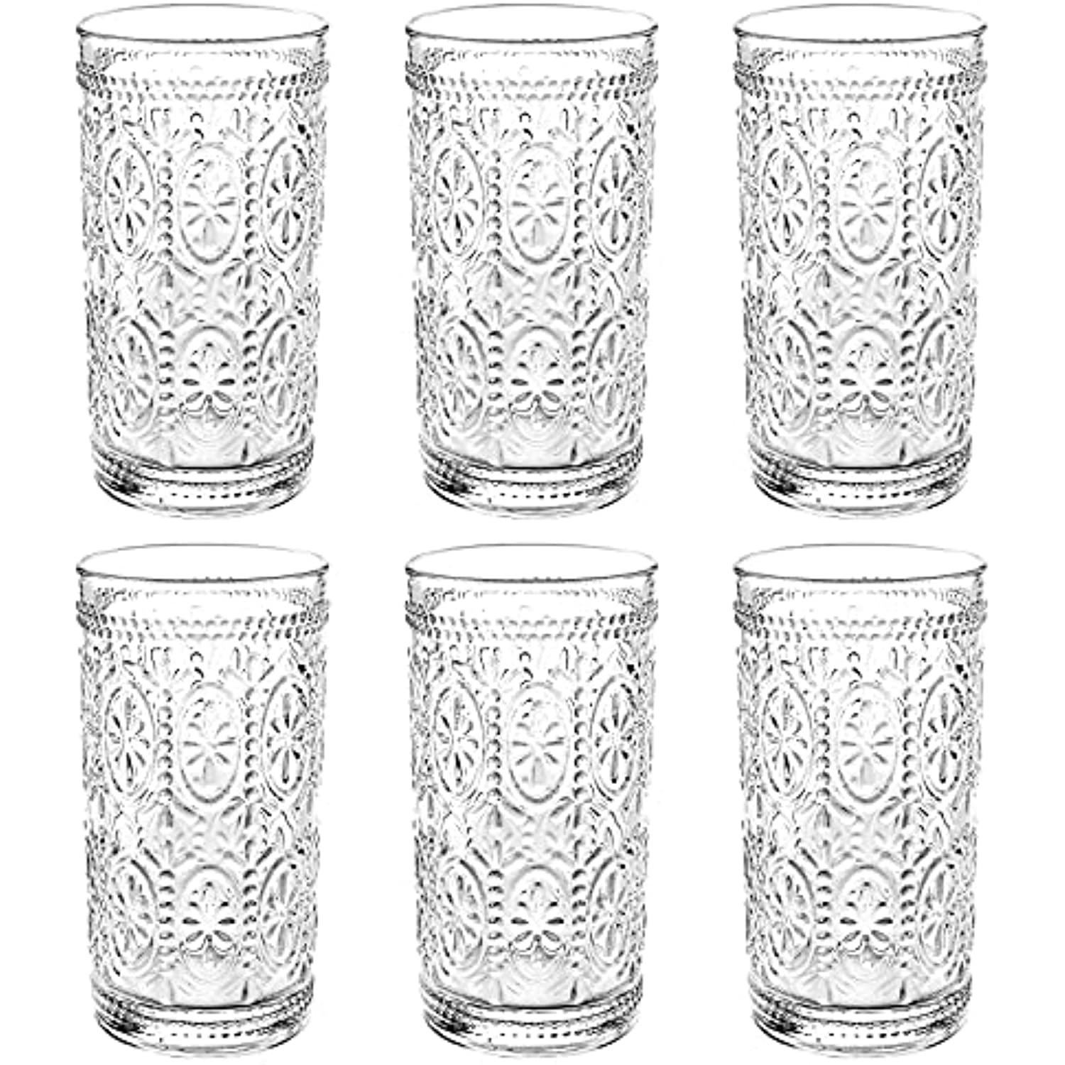 6 Pack 12 oz Romantic Water Glasses, Premium Drinking Glasses Tumblers for Beverages