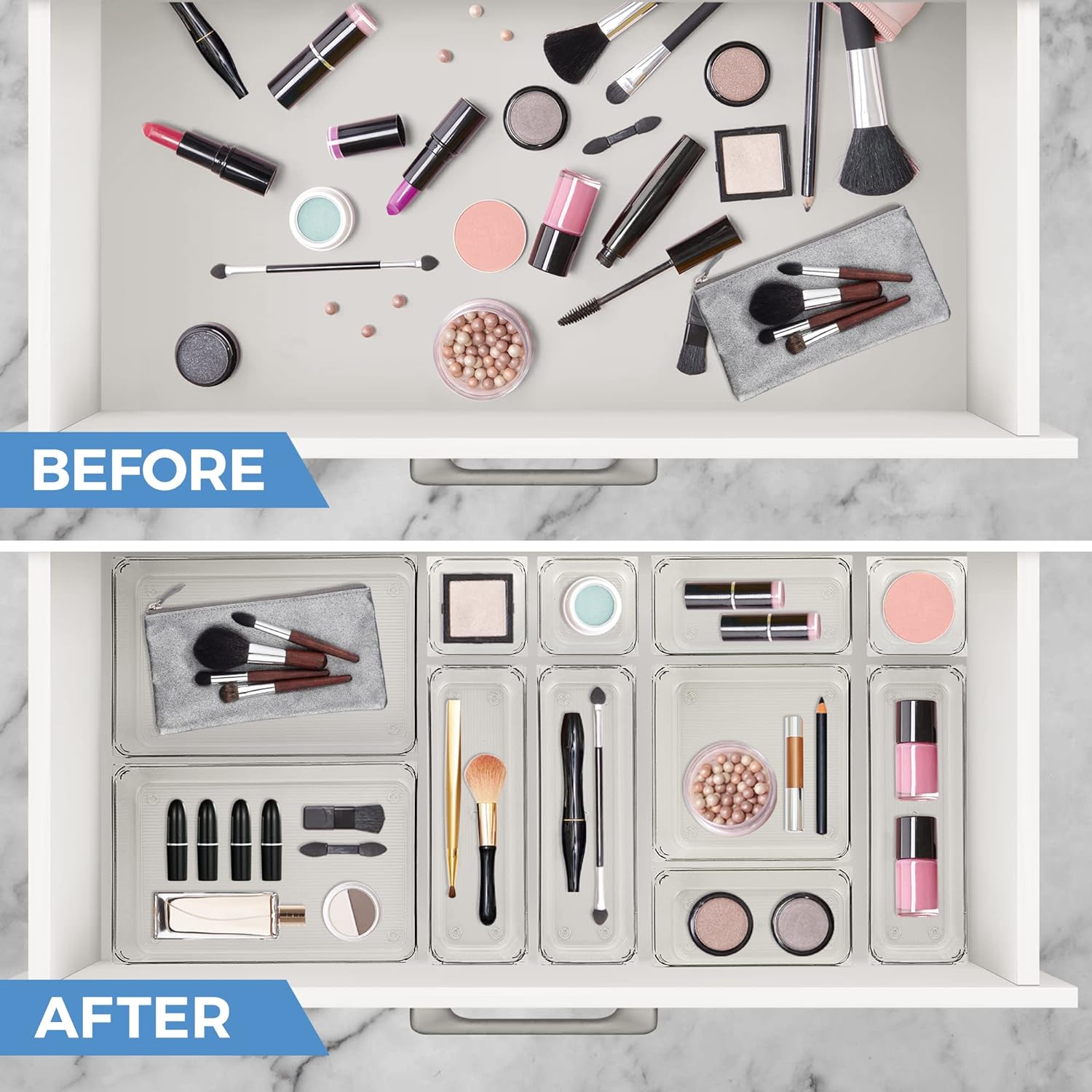 - Make Everything Organized - This makeup organizer for drawer is a great choice for storing a wide range of household items from kitchen tools like cutlery and utensils to craft supplies. They are even nicely sized for household tool storage, makeup drawers, and closet organizers for properly storing jewelry or other small accessories