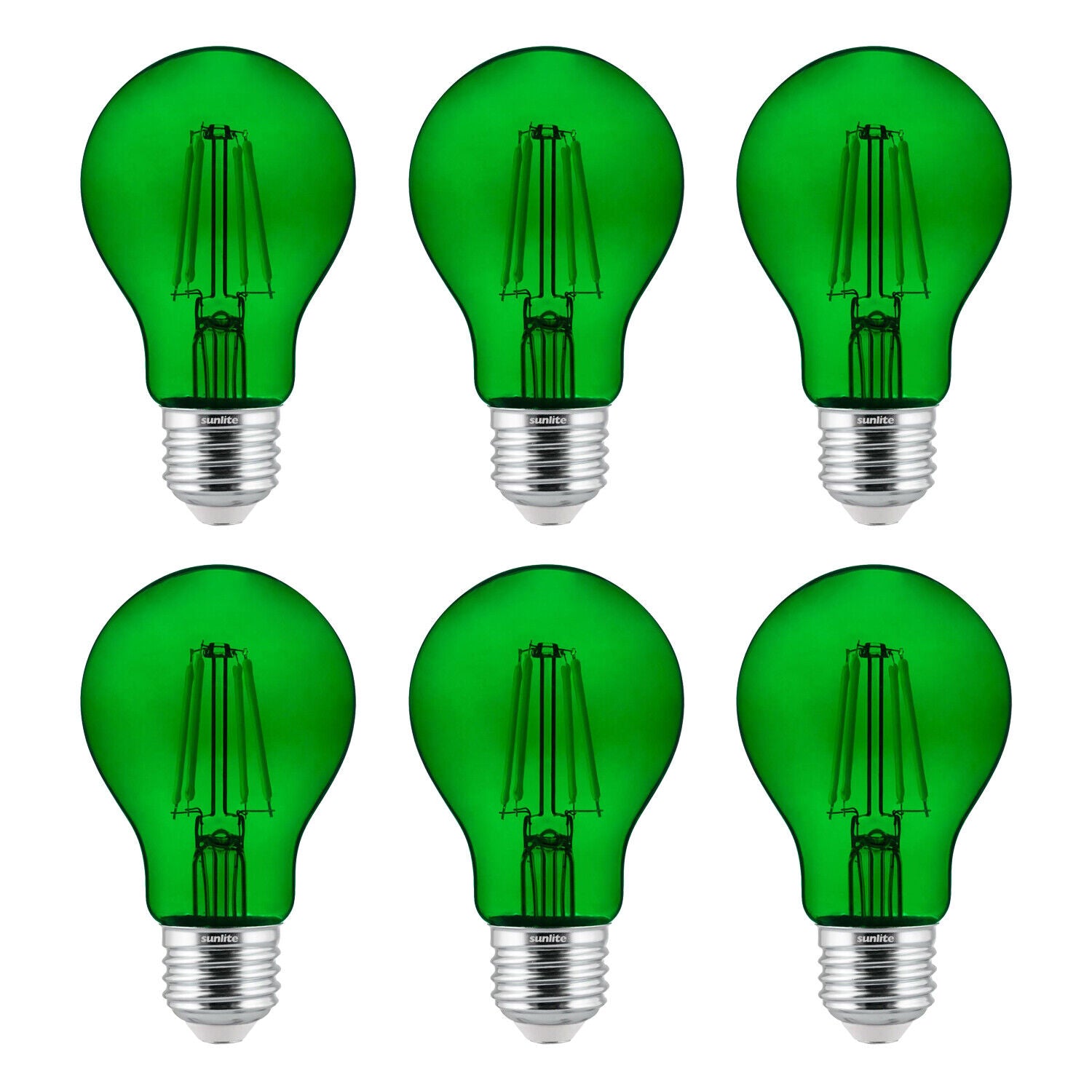 6-Pack Sunlite LED Transparent Green A19 Filament Bulbs, 4.5 Watts, Dimmable
