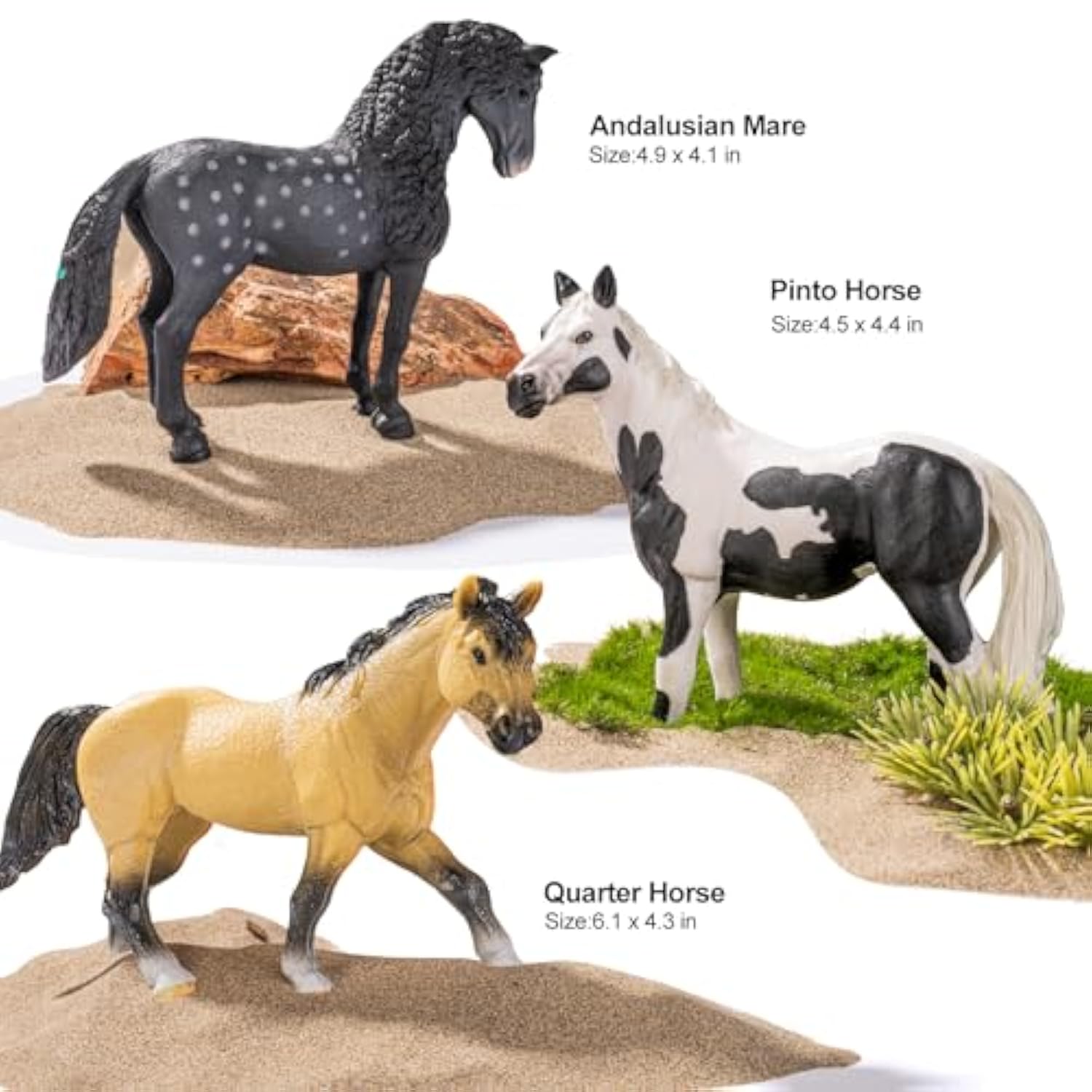 | Variety Of Horse Breeds: The Set Features 6 Unique Horse Breeds: 1 Tennessee Walking Horse Stallion, 1 Tennessee Walking Horse Mare, 1 Friesian White Horse, 1 Pinto Horse, 1 Andalusian Mare, And 1 Quarter Horse, Each Known For Its Distinctive Beauty And Traits | | Set Of 6 Realistic Horse Figurines: This Set Includes 6 Highly Detailed And Lifelike Horse Figurines, Each Standing Proudly On Its Hooves. Perfect For Igniting Kids' Creativity And Providing Hours Of Fun | | Ideal Size For Kids: Each Figurine Measures Approximately 6 Inches In Length, Making Them Perfect For Kids To Hold, Play With, And Create Imaginative Stories | | Educational And Fun: These Horse Figurines Offer A Fun, Interactive Way For Kids To Learn About Different Horse Breeds And Their Characteristics While Fostering Creative Play | | Perfect Gift For Kids: Ideal For Children, These Figurines Are Great Birthday Gifts, Cake Toppers, Party Favors, Or Everyday Toys For Horse Lovers And Animal Enthusiasts | |