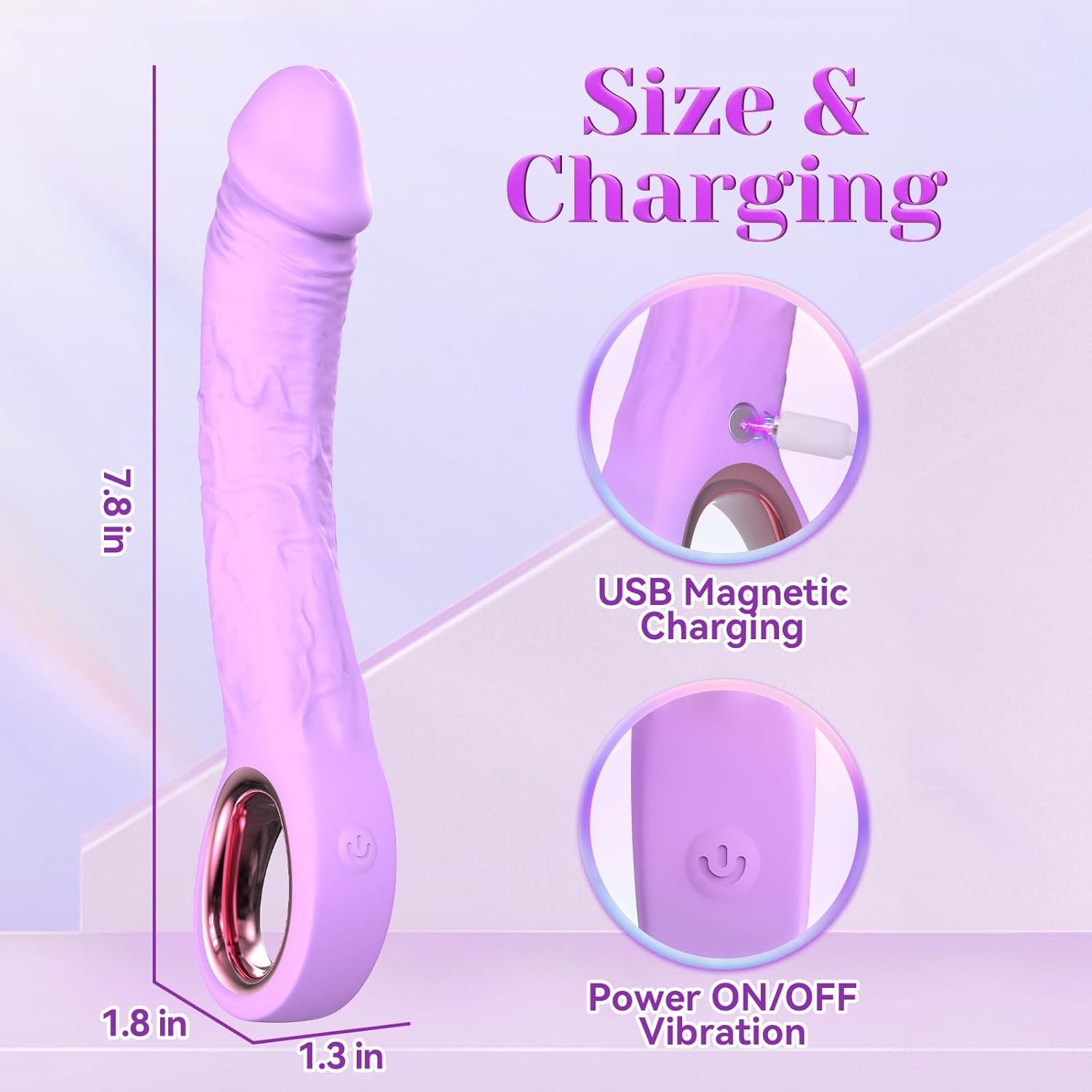 Lifelike Design: Crafted for realism, this 7.8-inch G-spot vibrator features a textured shaft and defined head to enhance stimulation for an authentic experience.