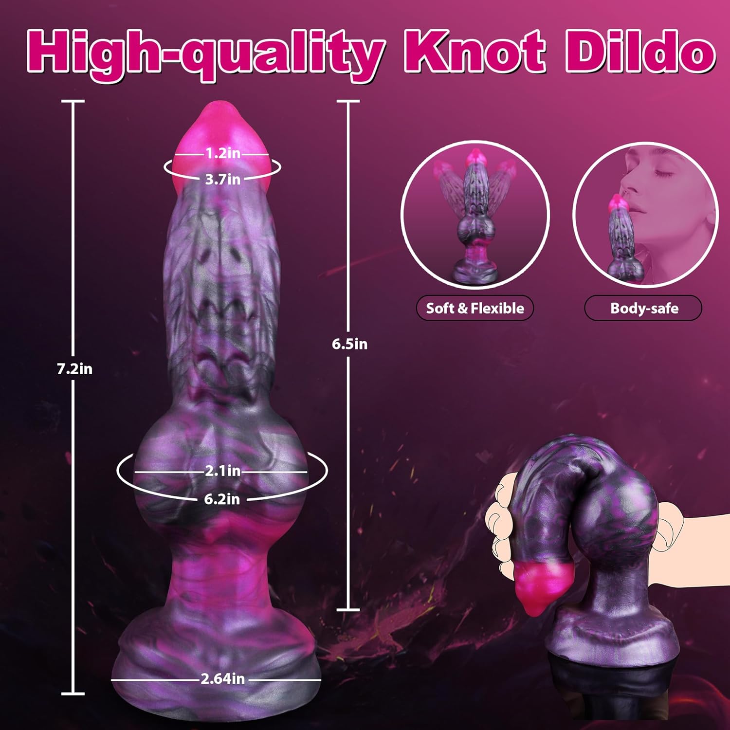 7'' Soft Silicone Knot Dildo with Suction Cup, Fantasy Animal Design for Beginners