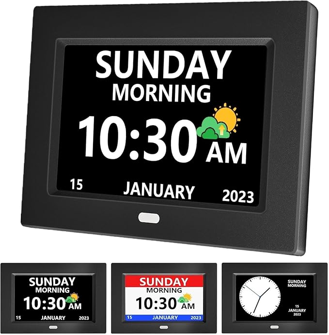 7 Inch Clock with Day and Date for Elderly Large Display Digital Clock 12 Alarms 3 Medicine Reminders Large Font Dementia Clocks Alarm Clock for Seniors Day Clock Black