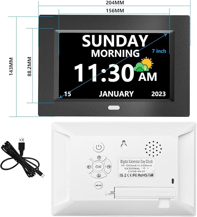 - 【Automatic Brightness Function】The digital calendar day clock can auto-adjust the brightness between the day and night, brightening at 7 a.m. and dimming at 7 p.m.Users can also manually set three brightness levels, high, medium and low. Manual Settings mean the brightness stays the same during the day and night.