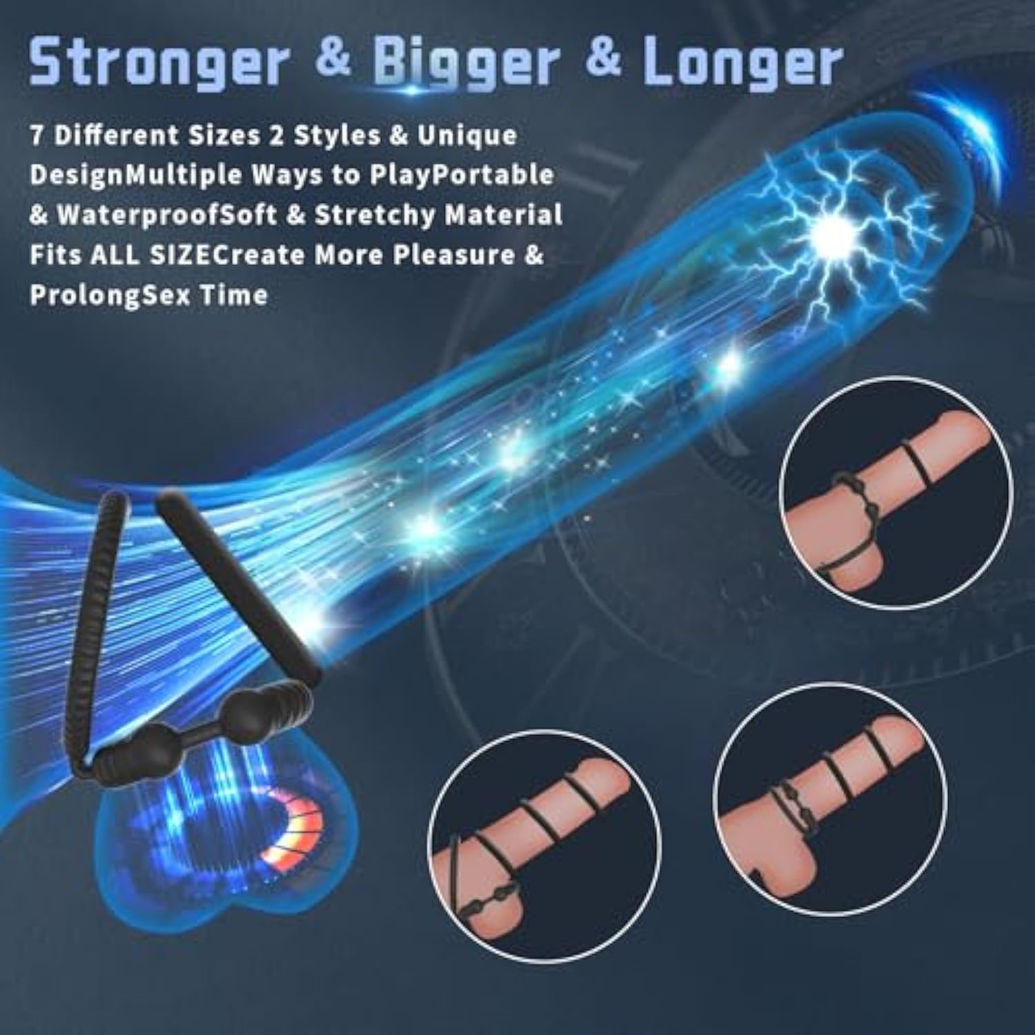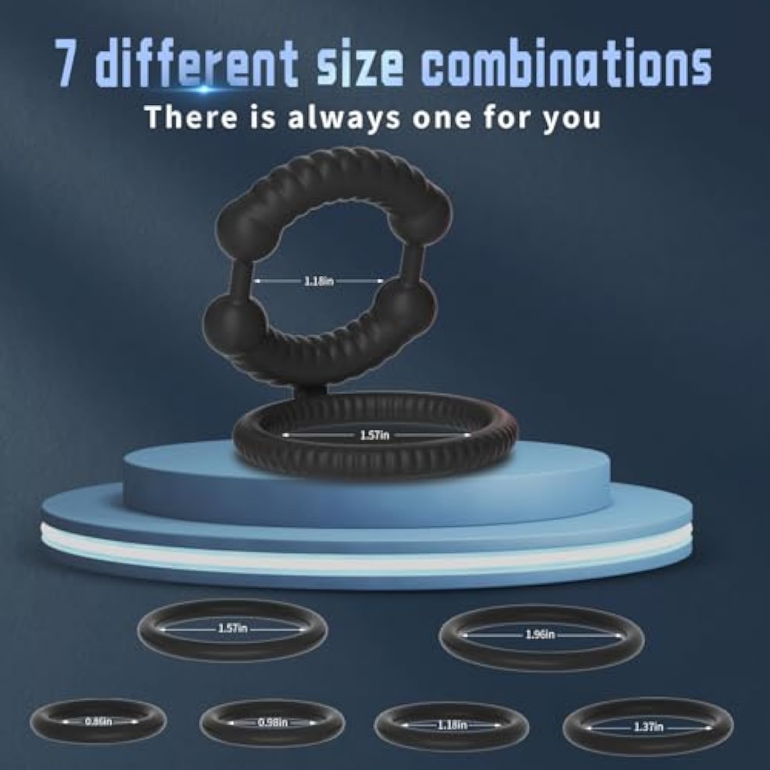 - 7 Different Sizes The Penis Rings Have 7 Different Size For You To Match Freely. Adapts To All Sizes, Perfectly Fits Your Penis, Increase Your Pleasure And Satisfy Your Partner. Wear Them In Different Combinations For Different Effects And Sensations.Pe