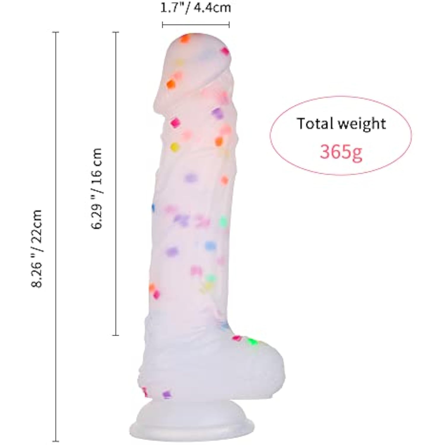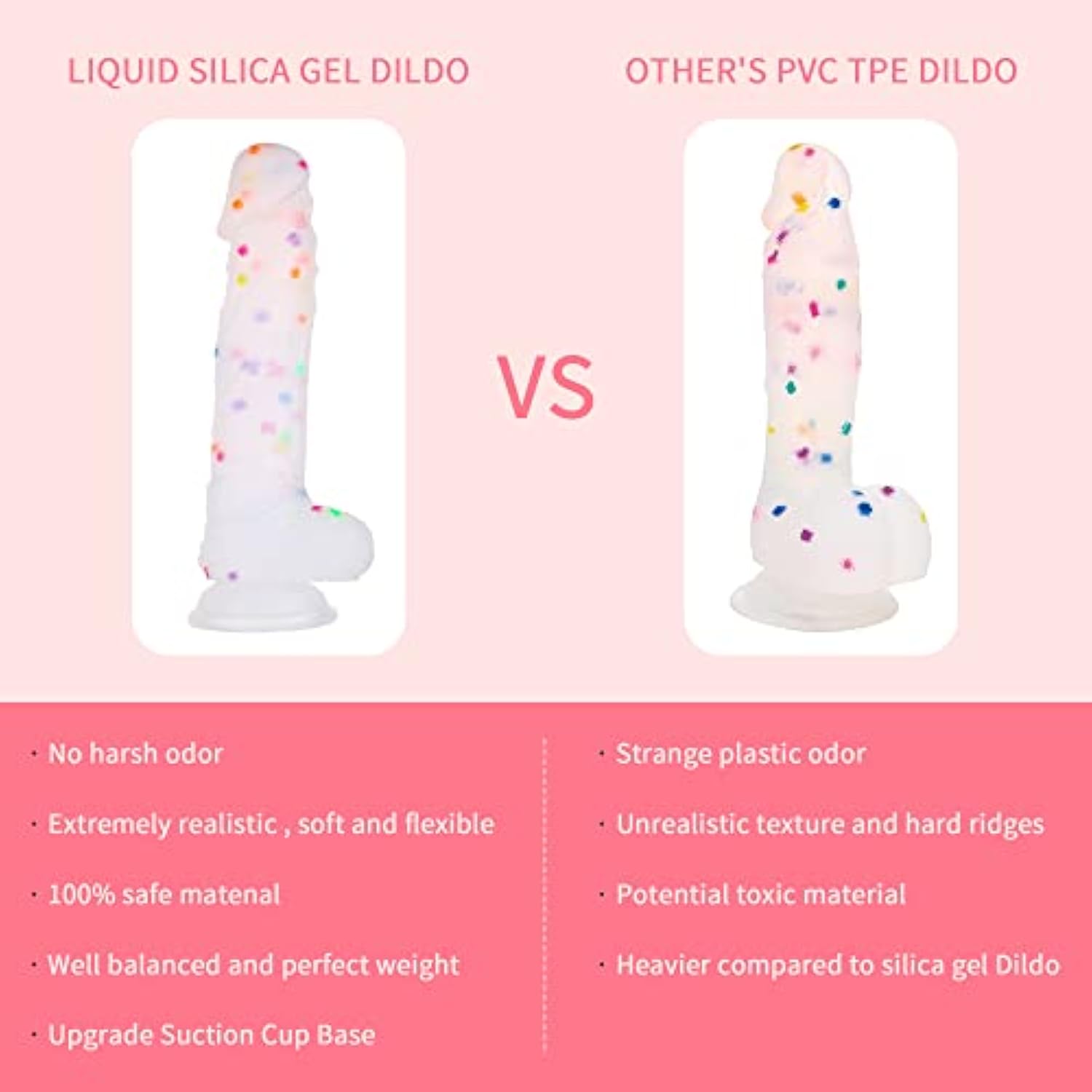 8.2 Inch Confetti Clear Silicone Dildo With Flared Suction Cup Base For Hands-Free Play, Flexible Dildo With Curved Shaft And Balls For Vaginal G-Spot And Anal Prostate