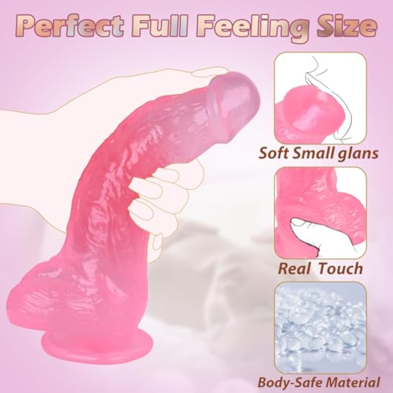8.3 Inch Dildo,Soft Thick Dildo,Small Glans Pink Realistic Anal Big Dildo With Strong Suction Cup,Safe Material Men Penis Adult Sex Toy,Vagina Anal Stimulate G-Spot For Women Or Beginner Sexual