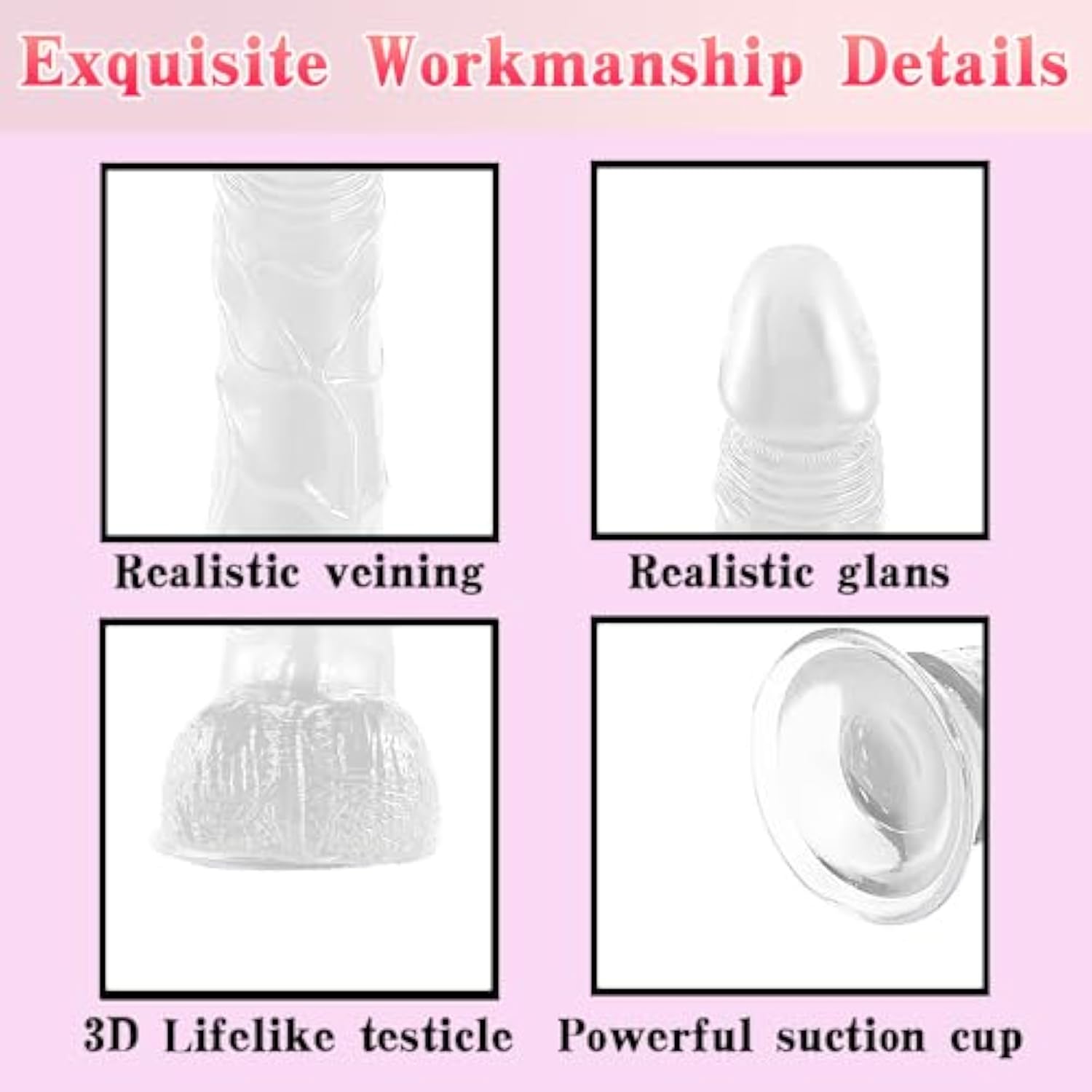 - ?Body-Safe Skin-Friendly Material?8.3 Inches Clear Dildo Penis With Vivid Glans, 6.9'' Insertable Length ! Focusing On The Selection And Upgrading Of Materials, This Adult Sex Toys Is Made Of Phthalates-Free, Skin-Friendly, Soft And Safe Tpe Material, M