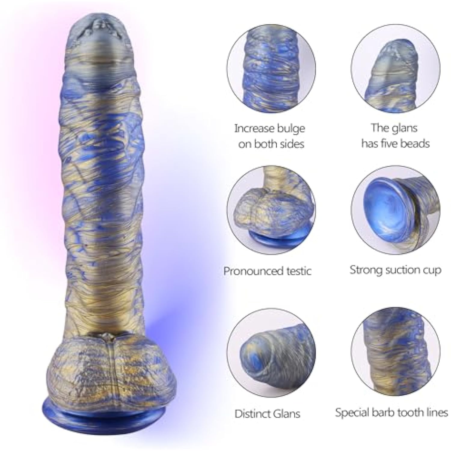 8.66 Inch Realistic Huge Silicone Dildo For Women? Big Dildo With Strong -Suction Cup?Adullt Toys For Women Pleasure Dildo ?Dildo For Men (8.66 Blue Gold)