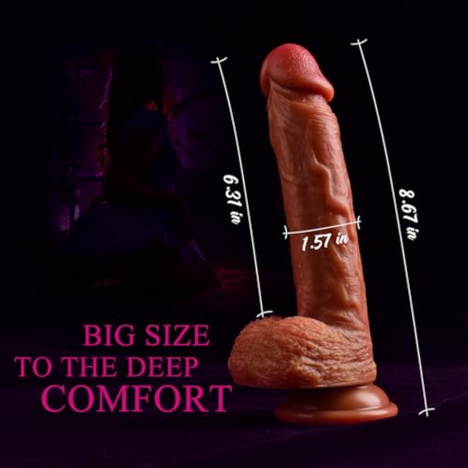 | ?Realistic Large Dildo?:Crafted With High Quality Silicone, It Simulates The Penis, Reproduces The Natural Appearance And Tactile Sense, And Is Carefully Designed With Realistic Vein Texture To Provide An Unparalleled Real Experience. | | ?Powerful Suction Cups For Easy Play?:Use A Sturdy Suction Cup Base On Any Flat Surface For Exciting Hands-Free Enjoyment. Grab This 8.67-Inch Dildo And Test Your Limits With A Powerful Suction Cup Base That Frees Your Hands, Whether It'S In The Bathroom, Kitchen, Bedroom, Wooden Door, Floor And More. | | ?Double Silicone That'S Harmless To The Body?:This G-Spot Dildo Is Made Of Liquid Silicone That'S Safe For Humans And Combines A Sturdy Inner Core With A Soft Outer Layer. The Design Is Very Soft And Does Not Harm Sensitive Parts Of The Body, Providing An Incredibly Realistic Experience. | | ?Enhancing Every Player'S Happiness?:This 8.67-Inch Artificial Dildo Increases Your Satisfaction! With A Diameter Of 1.57 Inches, This Extraordinary Sex Toy Is Perfect For Those Who Desire A More Complete Experience, Opening Up A New Sensory Journey, Deep Exploration And Inner Passion. | | ?Careful Packing?:This Product Arrives In An Unmarked Box And Is Carefully Shipped To Protect Your Privacy. With No Sensitive Content Displayed On The Packaging, You Can Be Assured Of Protecting Your Confidentiality And Avoiding Any Potential Embarrassment. | |