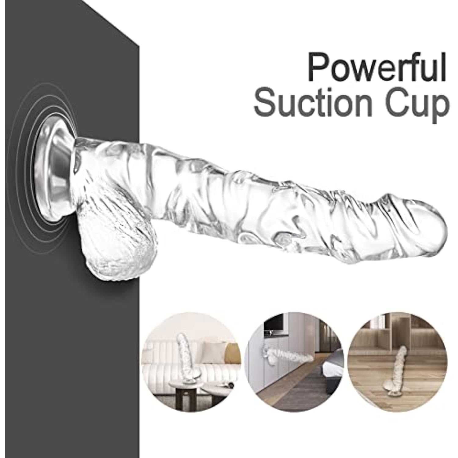 - Strong Suction Cup: The Clear Dildo Sex Toy With Suction Cup, You Can Attach It To Any Smooth Surface For Hands-Free Penetration