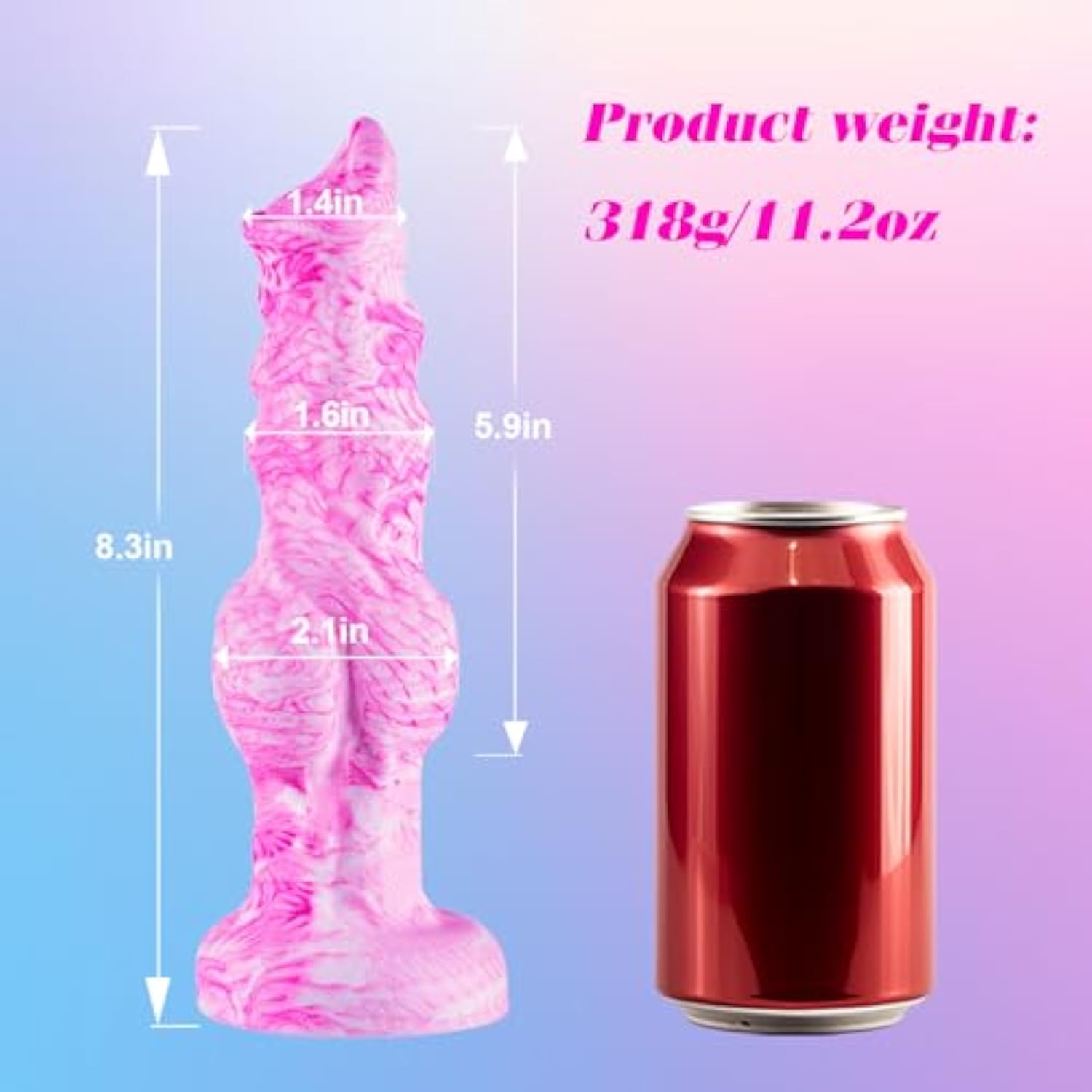 8 Inch Monster Wolf Knotted Dildo Anal Toy For Strap On, Realistic Thick Animal Alien Dildo Suction Cup, Soft Silicone Exotic Fantasy Dog Knot Dildo Male Female Dildo Anal Plug For Women Beginner Pink