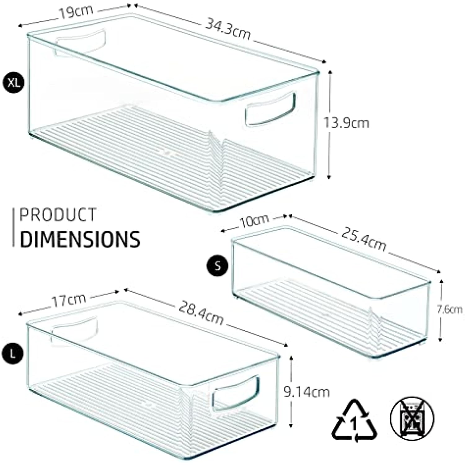 - 3 TOTALLY DIFFERENT SIZES: This set of storage bins contains 3 sizes to meet various scenarios, XL sizes fridge organizer stackable are great to organize deep things - L sizes stackable bins are perfect for kitchen pantry, shelves, cabinet, office - S sizes fridge organizerare designed for little stuffs in bathroom, drawer, fridge or freezer.