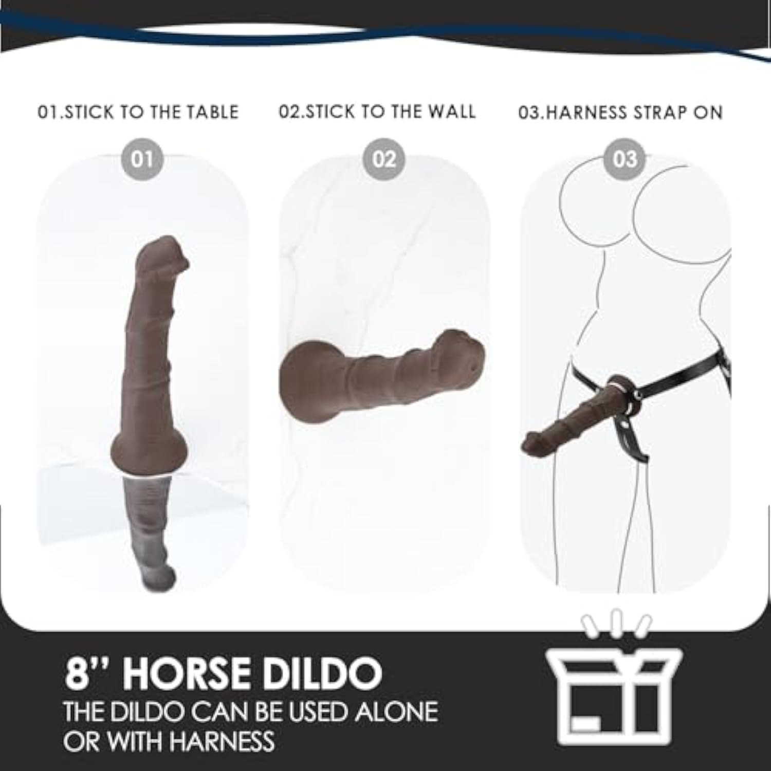 - 8'' Unique Horse Dildo Adjustable Leather Belt For Most Body Sizes - Crafted With A Realistic 8-Inch Fantasy Dildo In Black-Brown,An Ergonomic Double-Layer Leather Strap-On Harness For Most Body Size, A Rugged Metal O-Ring Ensuring Secure/Slip-Free Perf
