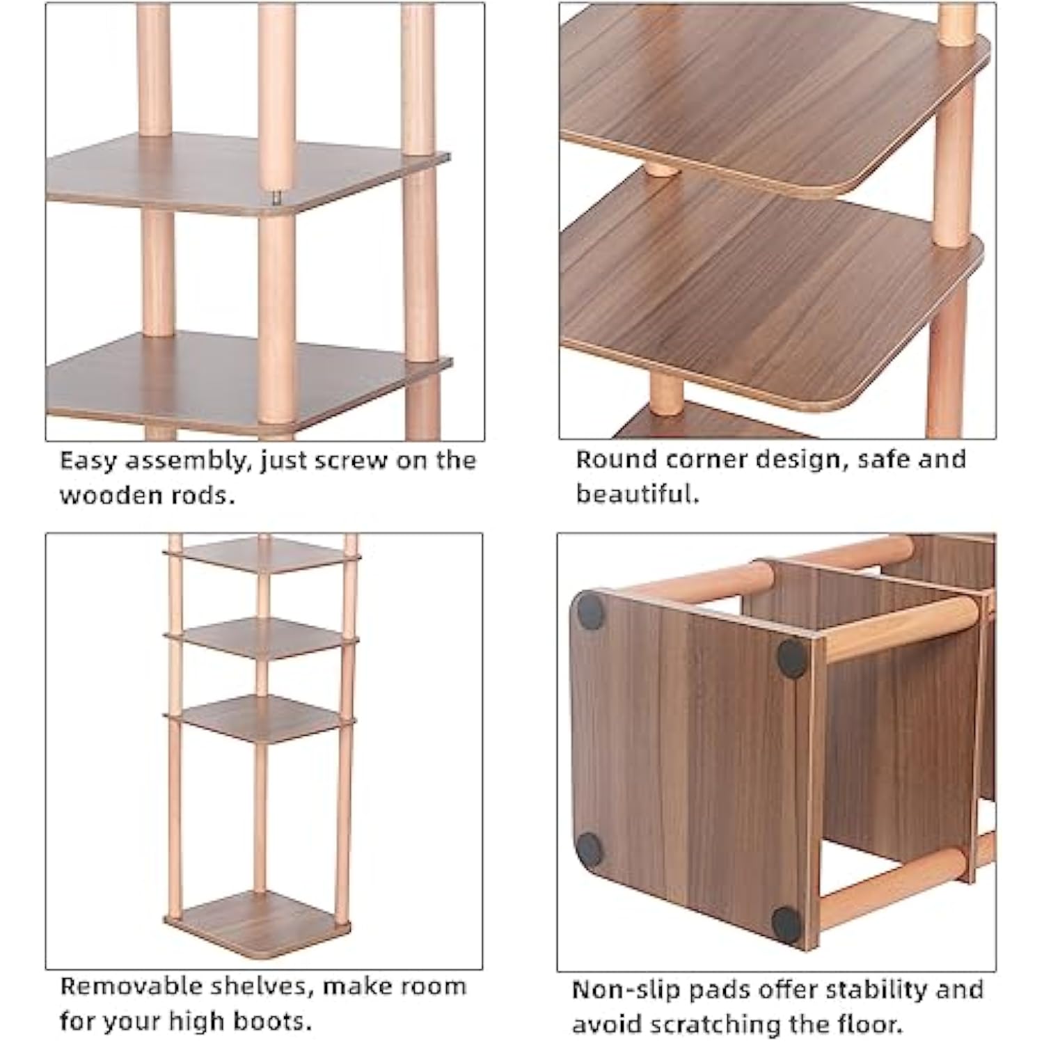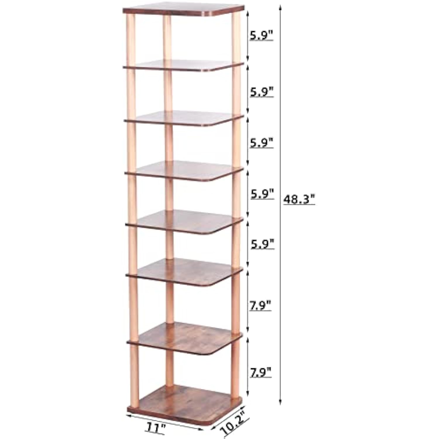 8 Tiers Stylish Wooden Space Saving Shoe Storage Stand/ Shelf/ Tower Free Standing for Entryway