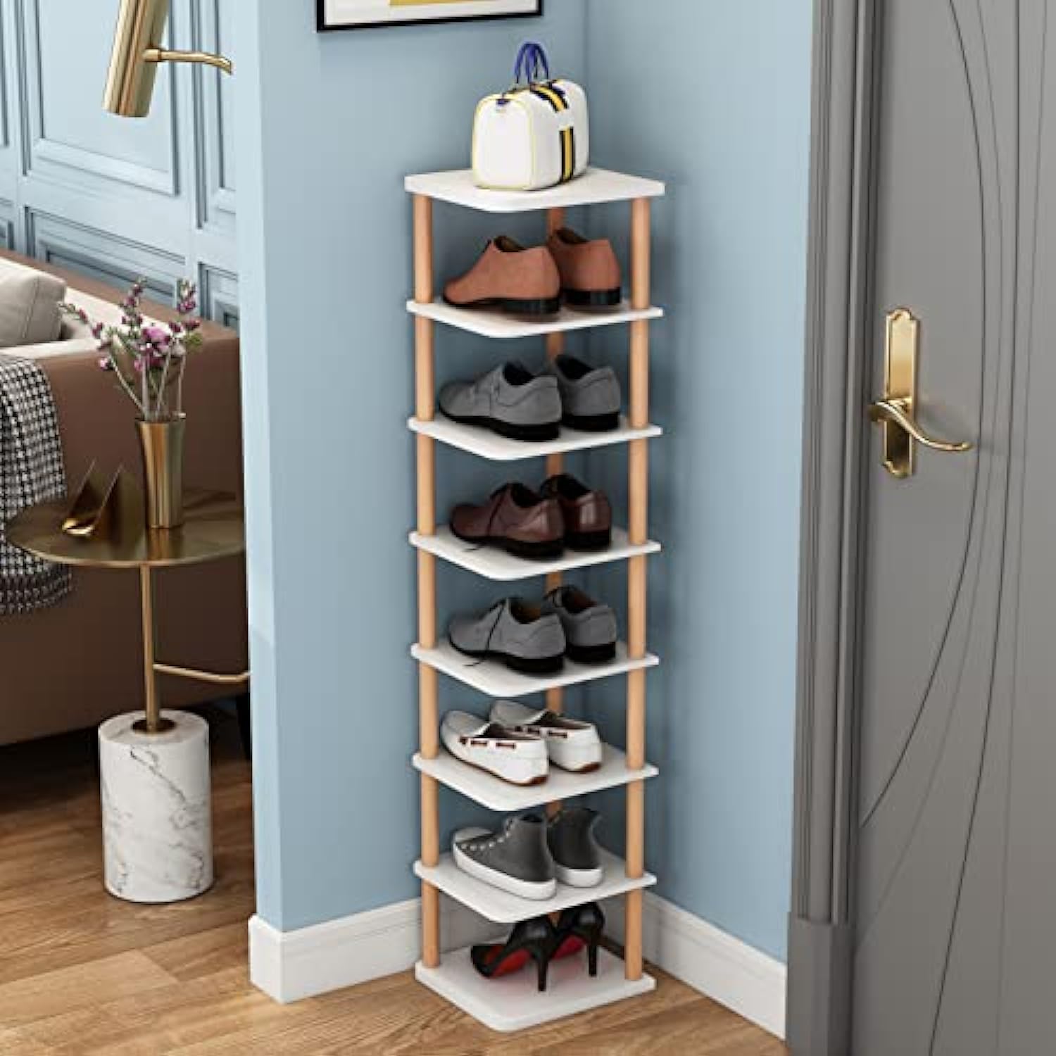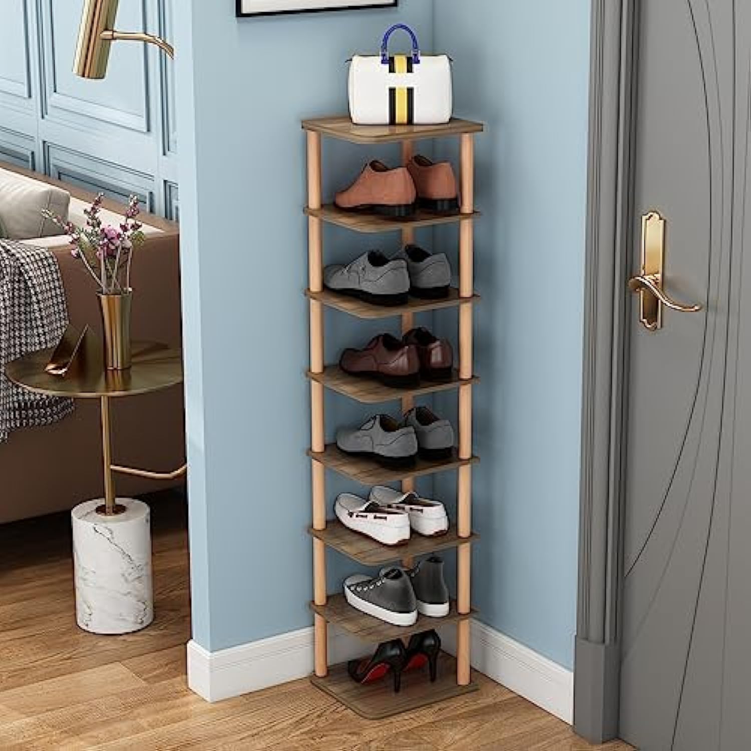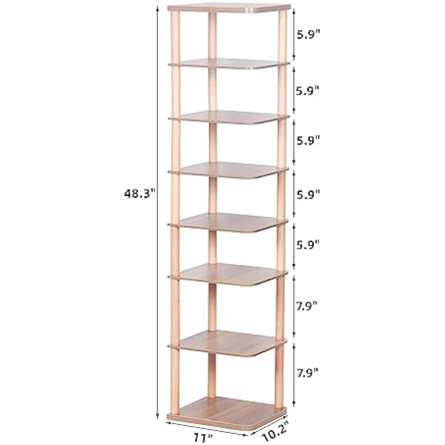 - 8-TIER VERTICAL SHOE RACK: The 8 tier open shoe storage enable easy access and visibility for your shoes, keep your room neat and organized without occupying too much floor space. Put a pair of shoes per layer, helping to classify different types of shoes in daily needs.