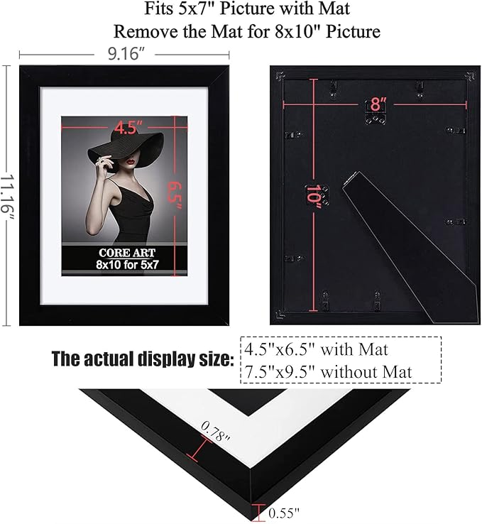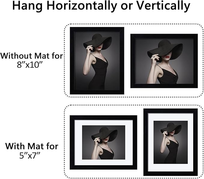 - 【Size】: 4 pieces of same size 8 x 10 frame with 5 x 7 mat. The openings for the frame and mat are slightly smaller than the picture itself, so they fit securely in the frame