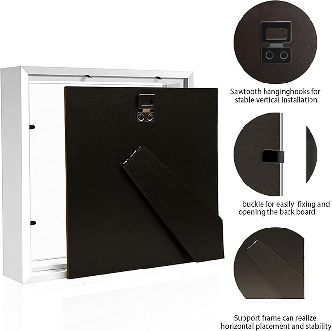 - Easy to Use : This shadow box can be placed upright on a tabletop, or easel-back for tabletop display. The shadow box can be hung directly on the wall through the sawtooth hanging hook on the back. The sawtooth hanging hook can prevent the position of the shadow box frame from sliding.