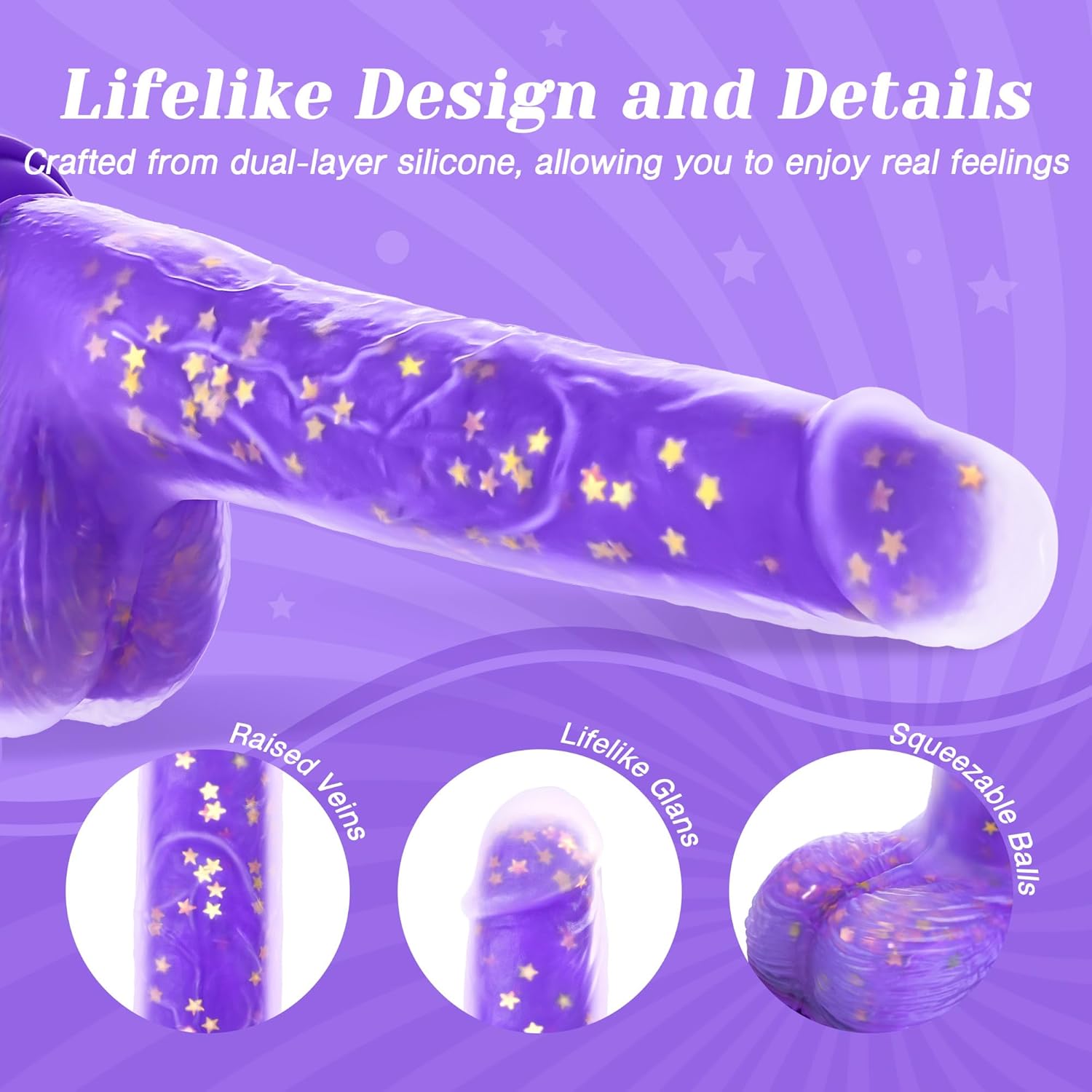 Realistic Dual Density Design: Features a lifelike dual-layered texture with a soft outer layer, enhanced by a captivating purple and gold starry design for a unique and sensual experience.