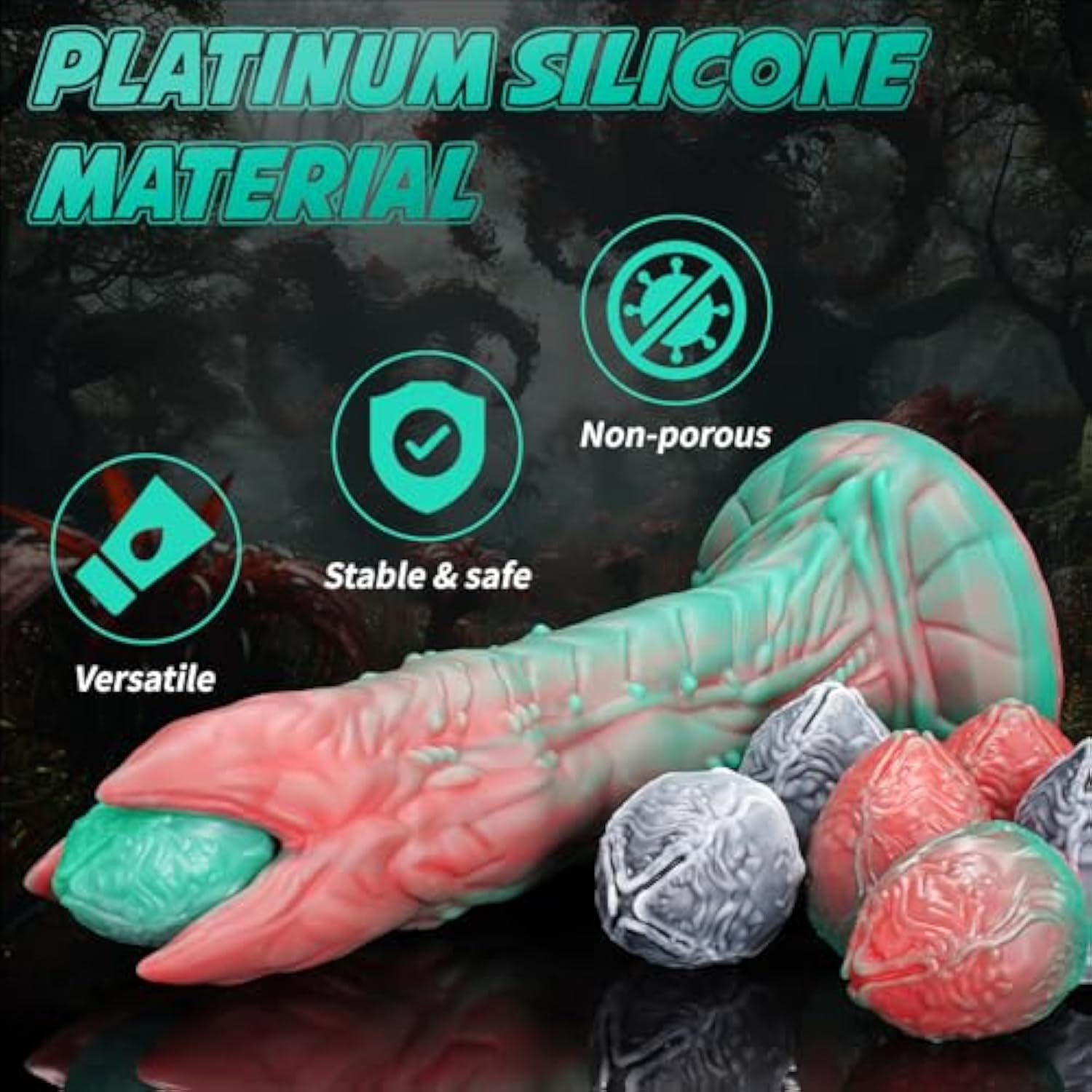 9.5 Inches ?Audrey Ii? Ovipositor Dildo With Medium Soft Platinum Suction Cup, Unique Design Hands-Free Play Sex Adult Toy With Egg Models And Booster