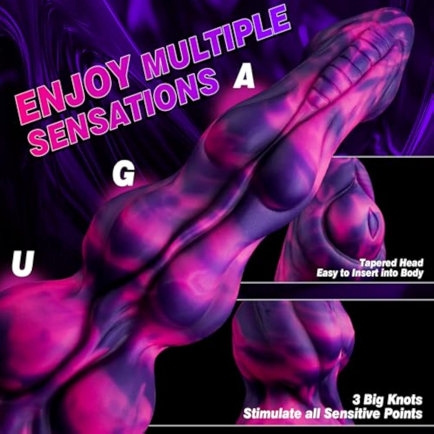 - Fantasy Knotted Dildo: The 9.6" Long Monster Dildo Flaunts A Dragon-Inspired Shape With A Thick, Ribbed Body Like The Thick Dildo, A Horse Dildo’S Sleek Curve, And Alien Dildo’S Otherworldly Texture, Topped With Three Massive Knots For An Unforgettable
