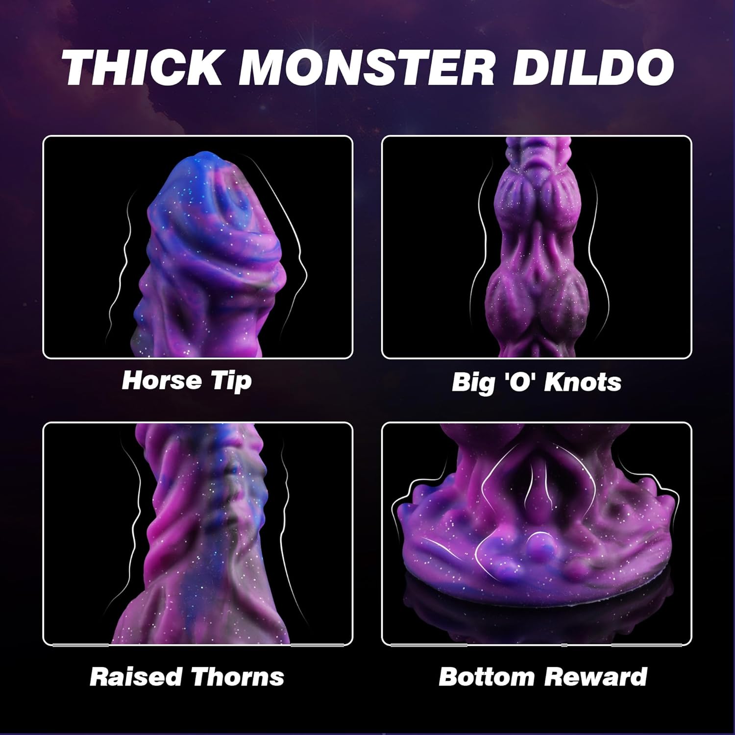 Each piece is uniquely crafted with a striking blend of purple, blue, and black, infused with shimmering accents. No two are alike, making this a one-of-a-kind addition to your collection. The distinctive aesthetic adds an exciting visual appeal to your intimate experiences.Strong Suction Cup for Hands-Free Play