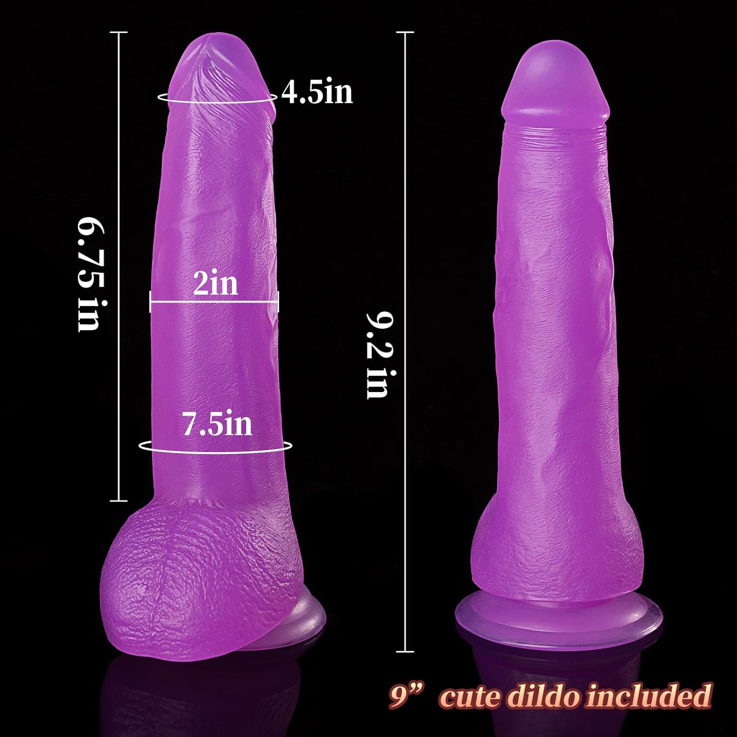 This uniquely designed 9-inch dildo offers a colorful, fun aesthetic with a realistic shape, making it perfect for those seeking both comfort and excitement. The thin head ensures smooth insertion, while the girthy shaft provides a satisfying stretch. Paired with an adjustable suction cup mount, it allows for hands-free pleasure on pillows, chairs, or even strapped to your thigh for added versatility.